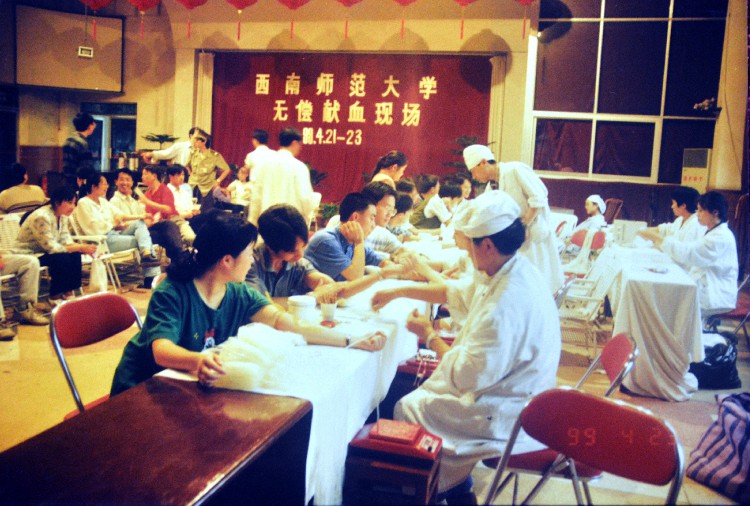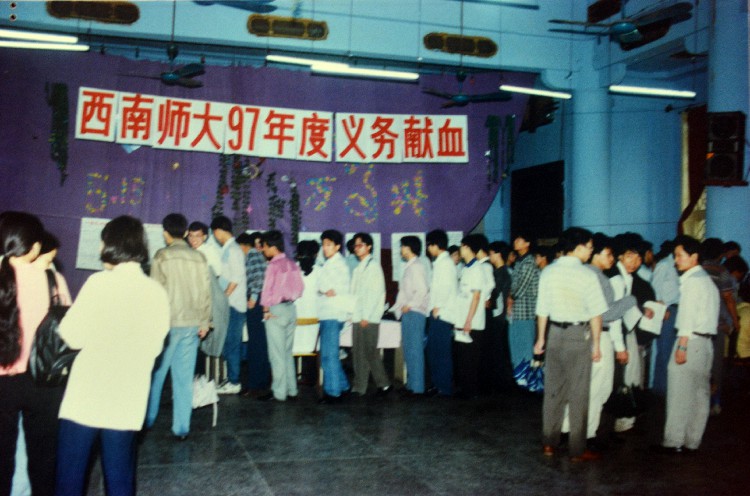 1997年,西南师大教职工献血现场(校医院院办 提供)