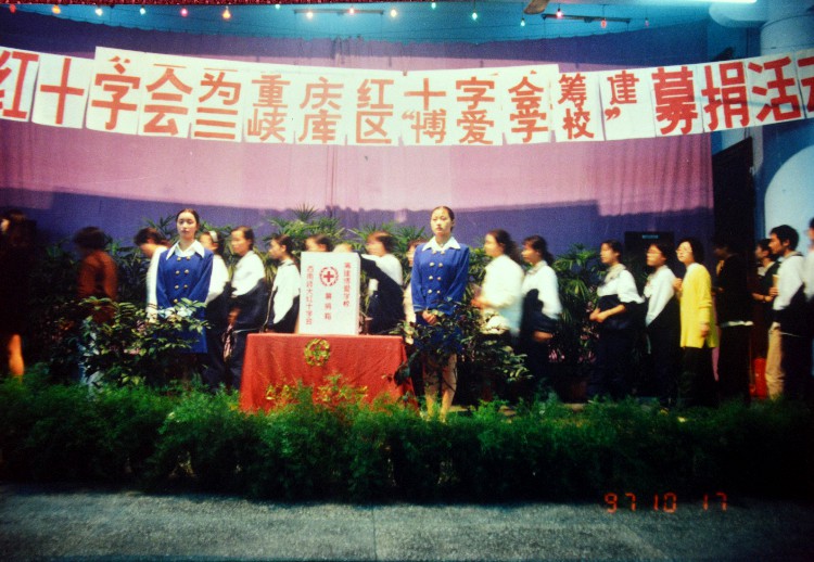 1997年,教职工为三峡库区募捐(校医院院办 提供)