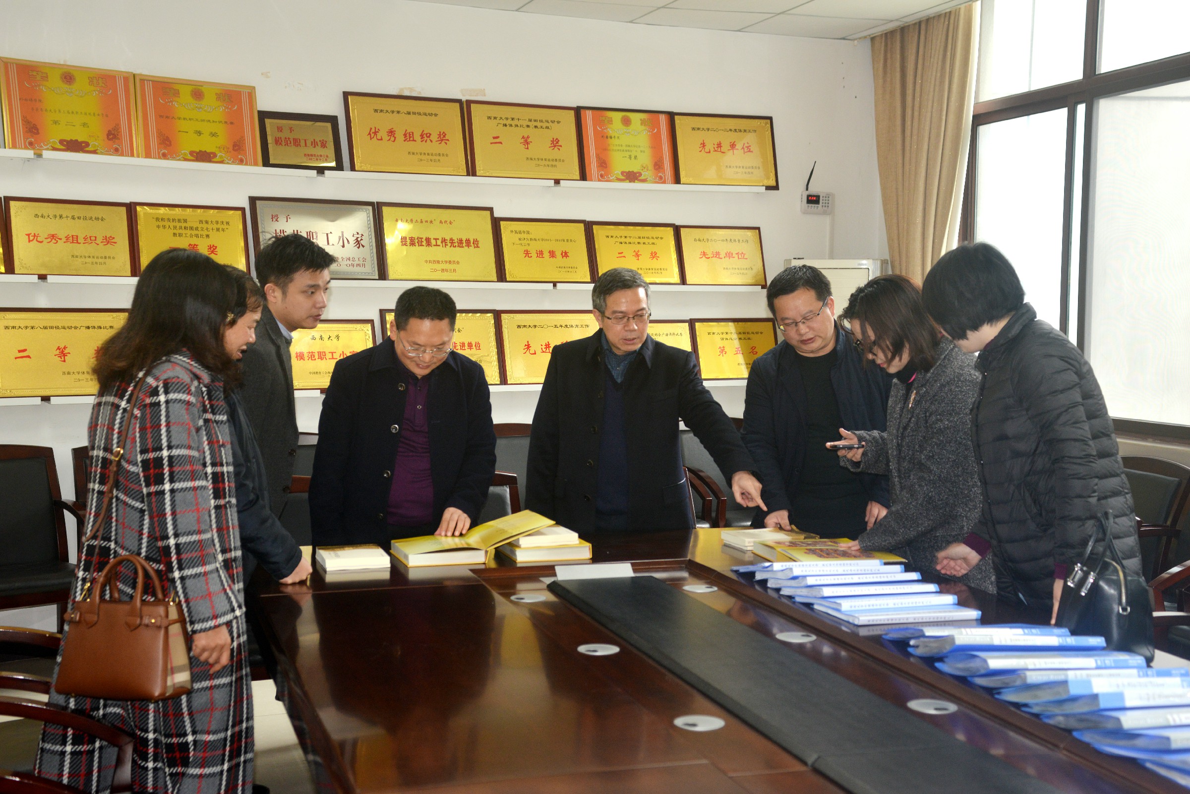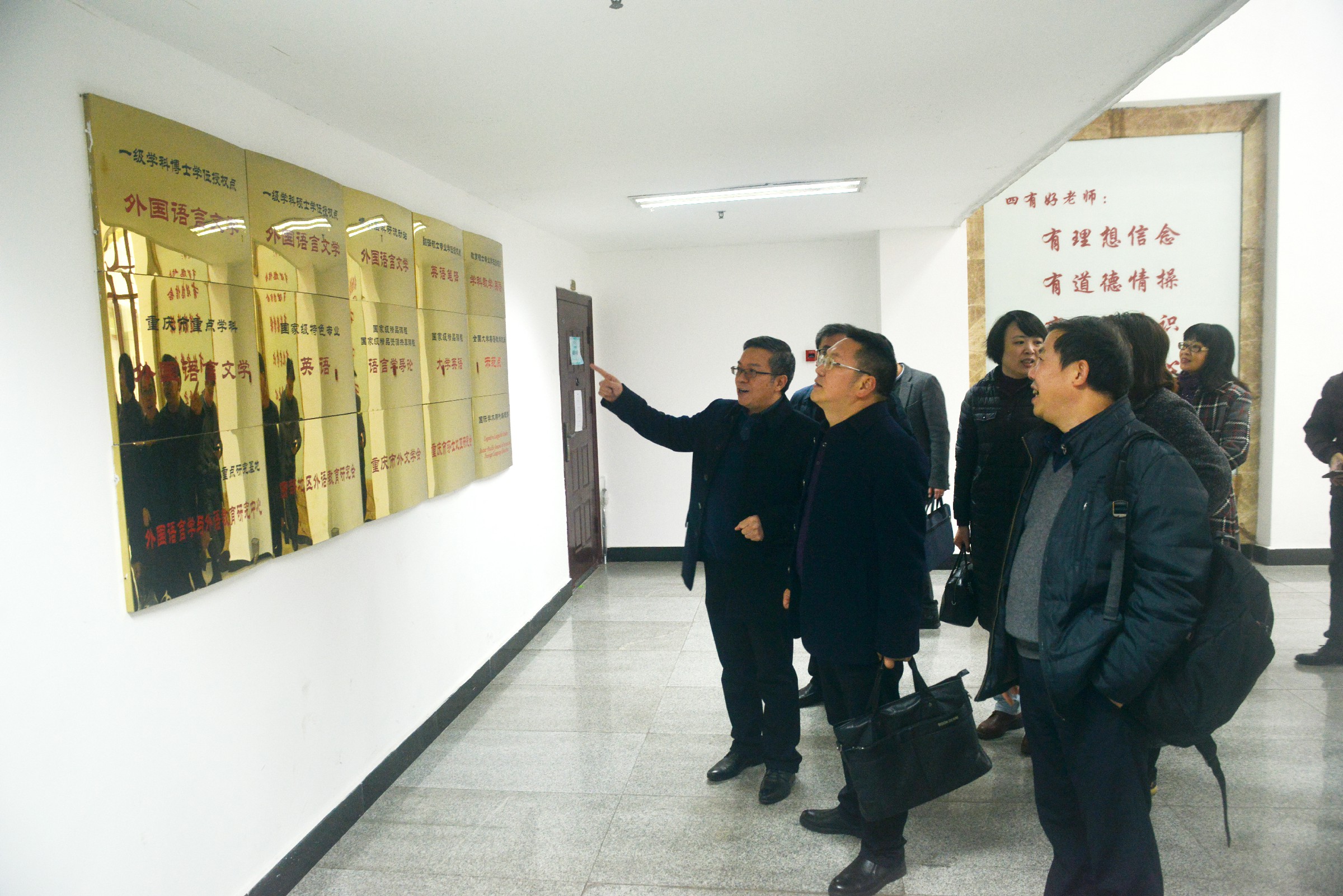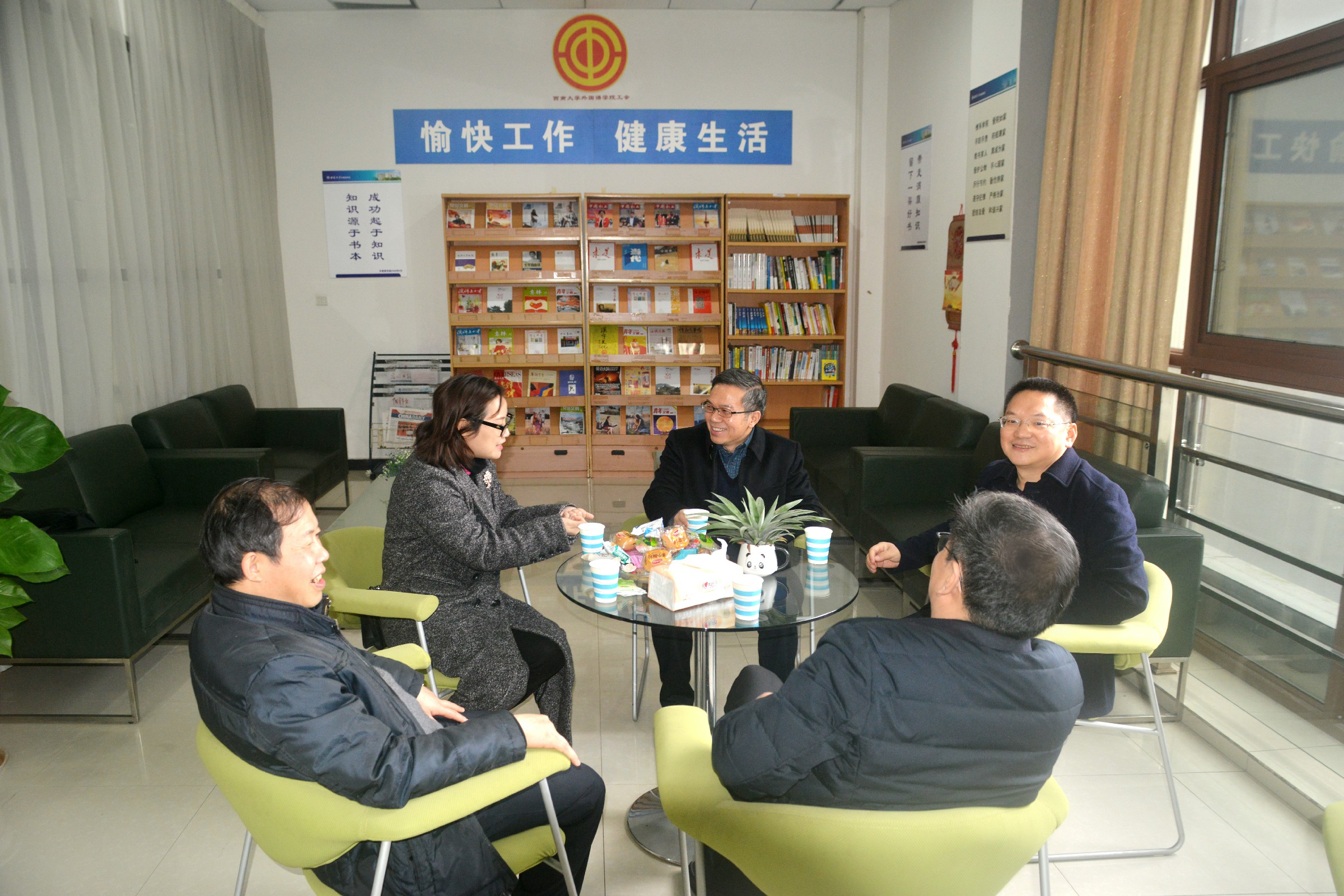 11月20日上午,经过前期申报,由市总工会基层组织建设部部长刘中国、副部长王宏、干事瞿波、市教科文卫体工会干部张晓宝四人组成的验收组来到外国语学院,通过实地察看、查阅资料、听取汇报等方式,现场检查外国语学院工会重庆市模范职工小家模范单位建设情况。外国语学院党委书记文旭、院长刘承宇、党委副书记陈渝、工会主席彭玉全以及工会委员出席汇报会,校工会主席刘文政、副主席胡席玉陪同参加检查验收工作。