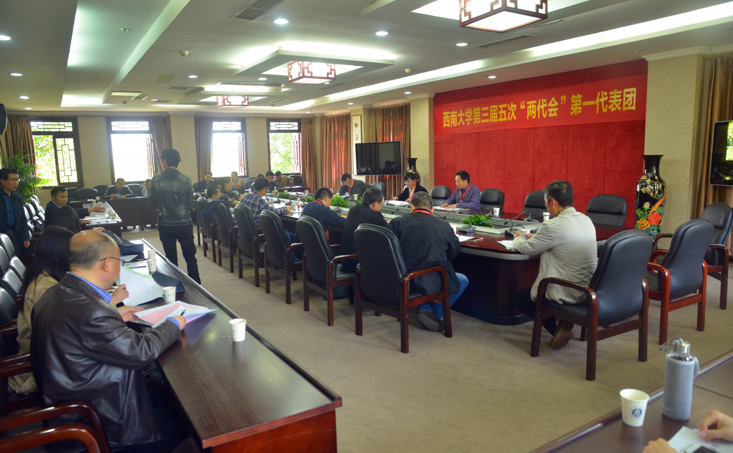 大会第二阶段是分团讨论和审议。与会代表分成10个代表团,围绕学校2018年行政工作报告、校学术委员会2018年工作报告和学校2018年财务工作报告进行审议,并对学校建设发展积极建言献策。学校领导分别参加代表团审议。