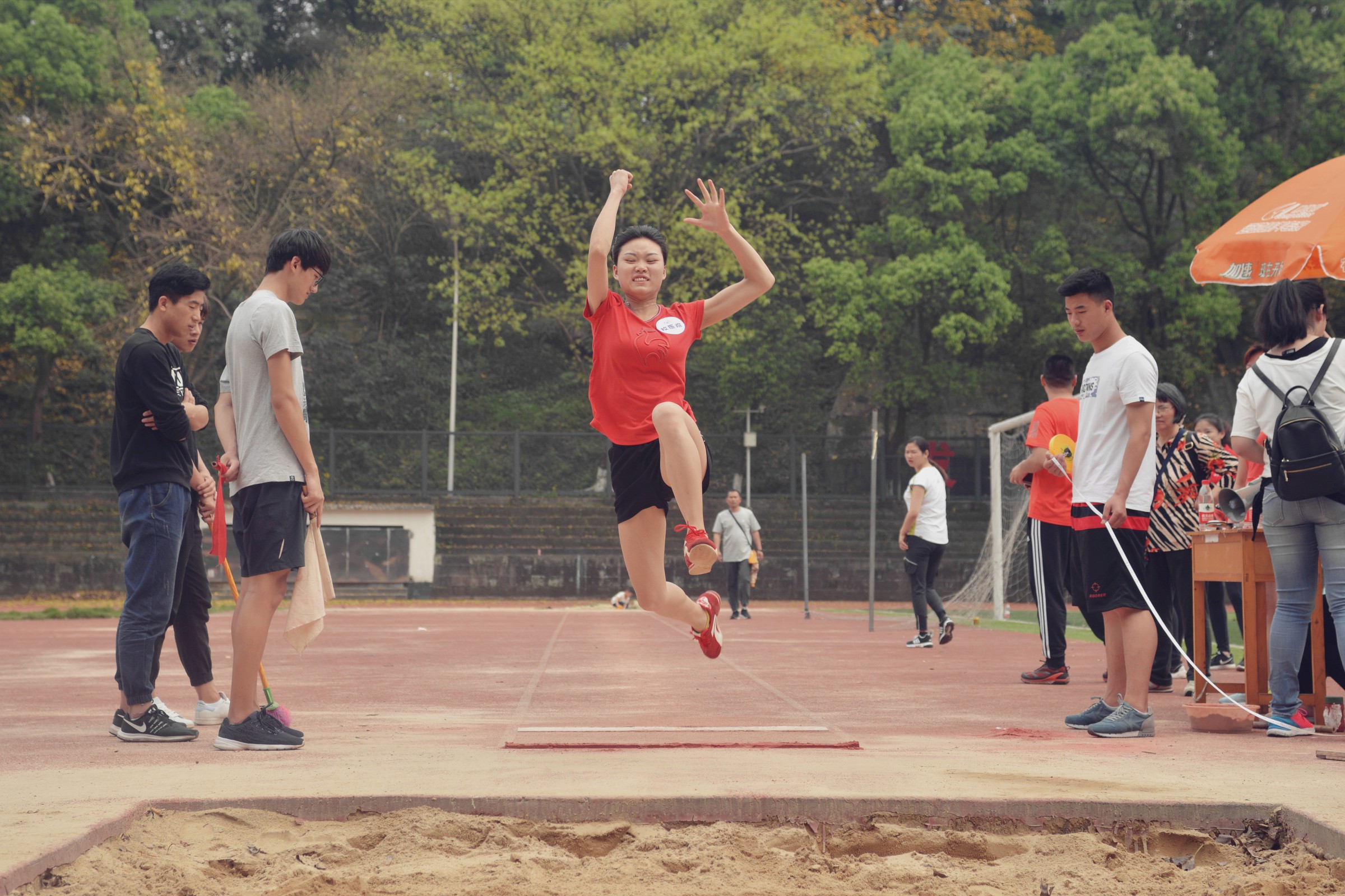 径赛场上的运动员,个个如矫兔般飞离起点,似利箭般冲向终点,赢得观众阵阵欢呼。田赛场上的运动员,个个摩拳擦掌,毫不示弱。跳高、跳远选手拼尽全力,向着心中的目标跨出坚定的步伐,跳了一次又一次,不断超越自我的拼搏完美诠释了更高更远的体育精神;铅球比赛的选手互相竞争,成绩越投越远,他们用毅力不断追逐着自己的梦想;团队跳绳比赛的运动员在长绳间敏捷地跳跃着,娴熟的技术让观众叹为观止。新增加的滚铁环接力、足球射门、篮球运球上篮接力、无敌风火轮、掷飞镖、螃蟹接力跑、毛毛虫接力等集体项目,更是赛出了创意,吸引了众多观众观看,既考验个人技术又考验团队配合,在啦啦队的助威声中,完美演绎着团队的力量。