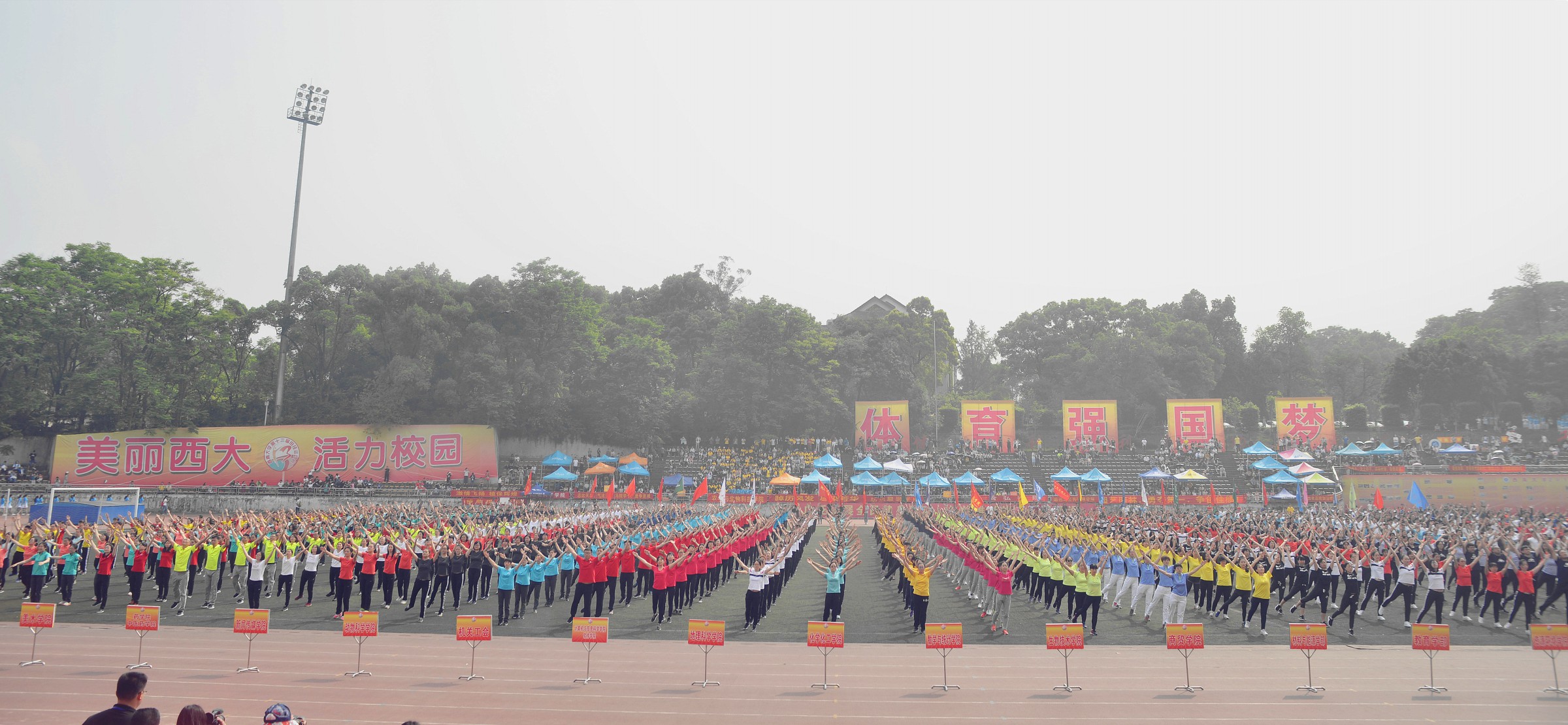 本届运动会教工组共设30个单人项目、10个集体项目以及广播体操比赛项目,来自46个部门工会的教职工共4000多人次参加了比赛,他们奋力拼搏的身影为春日的校园增添了朝气与活力。