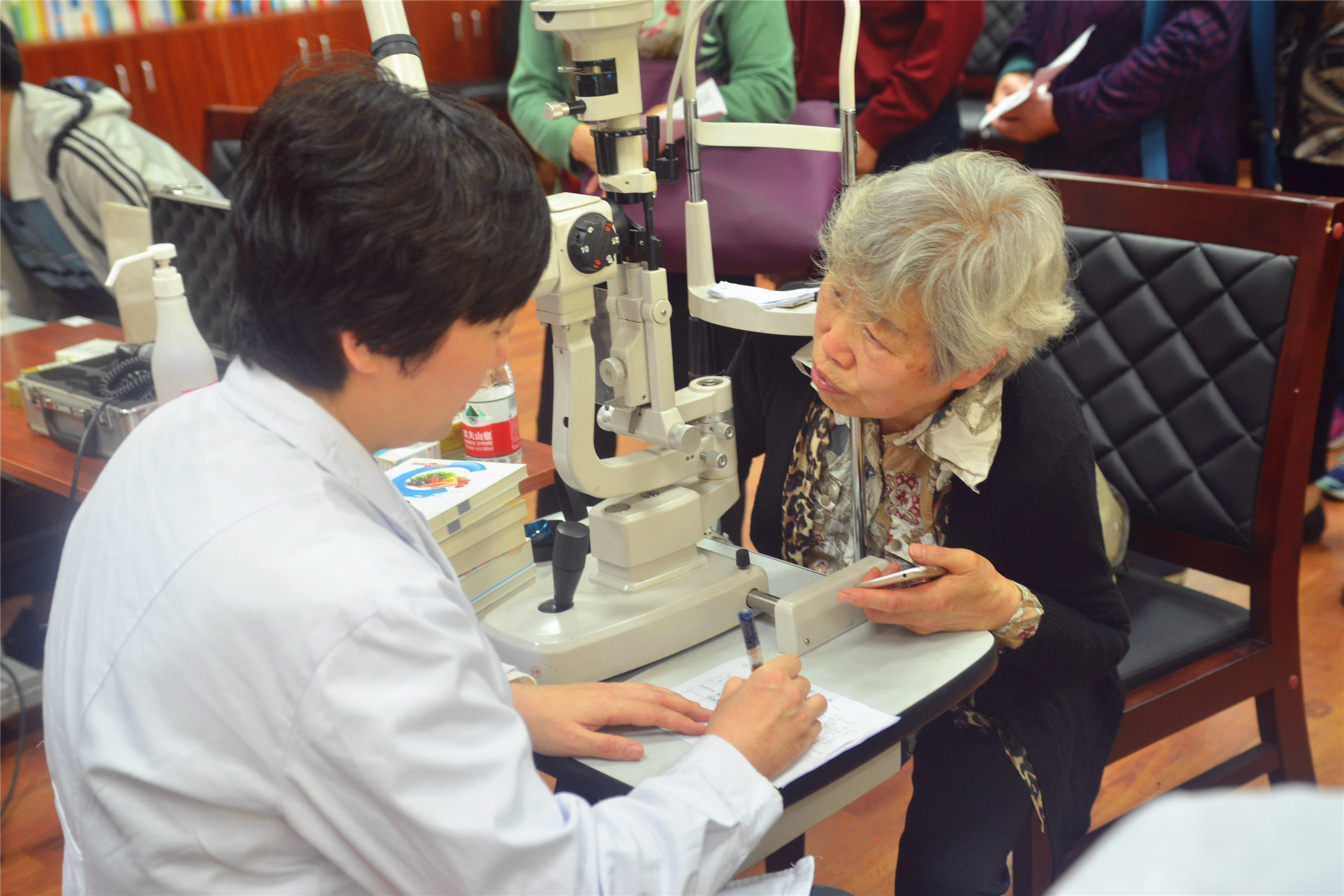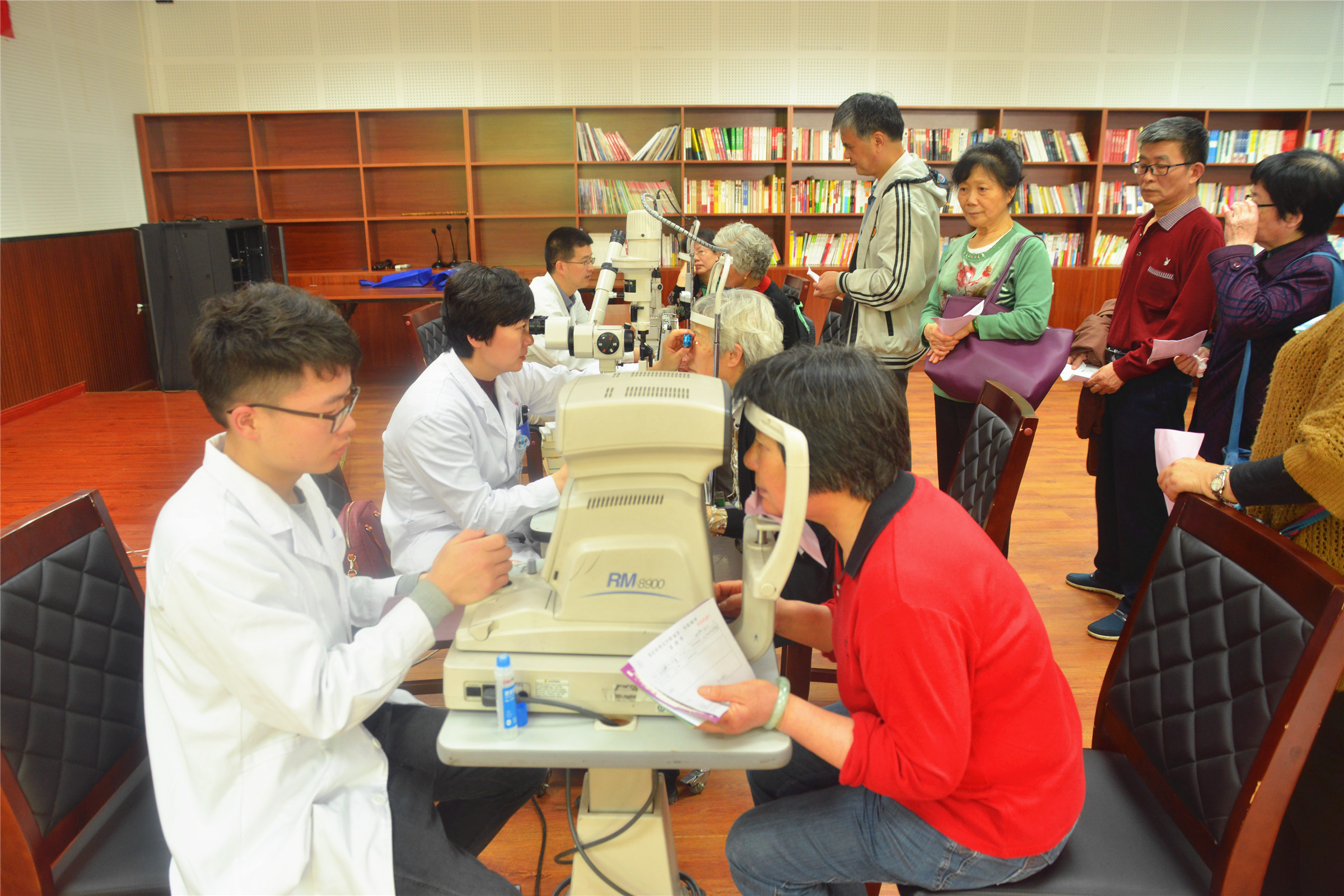 下午两点,教职工们早早的就守候在PA视讯集团圆顶多功能厅等待检查。义诊开始后,前来问诊的教职工络绎不绝,有来咨询的,有来检查的,也有之前做过手术来复诊的。在现场工作人员有条不紊的指引下,社区居民们一一按秩序填表和排队检查。由于眼科疾病是中老年人常见的疾病,所以前来咨询的大部分都是老年人,其中最大的已有90岁高龄。教职工们自觉排队,主动配合重医附一院眼科专家的检查,积极聆听和咨询眼科疾病相关知识。与此同时,医护人员还对其他老人提出的各种症状给与耐心细致的答疑解惑,并给予合理的健康宣教或提出治疗建议。教职工们感到非常满意,纷纷夸赞这次义诊办得好。