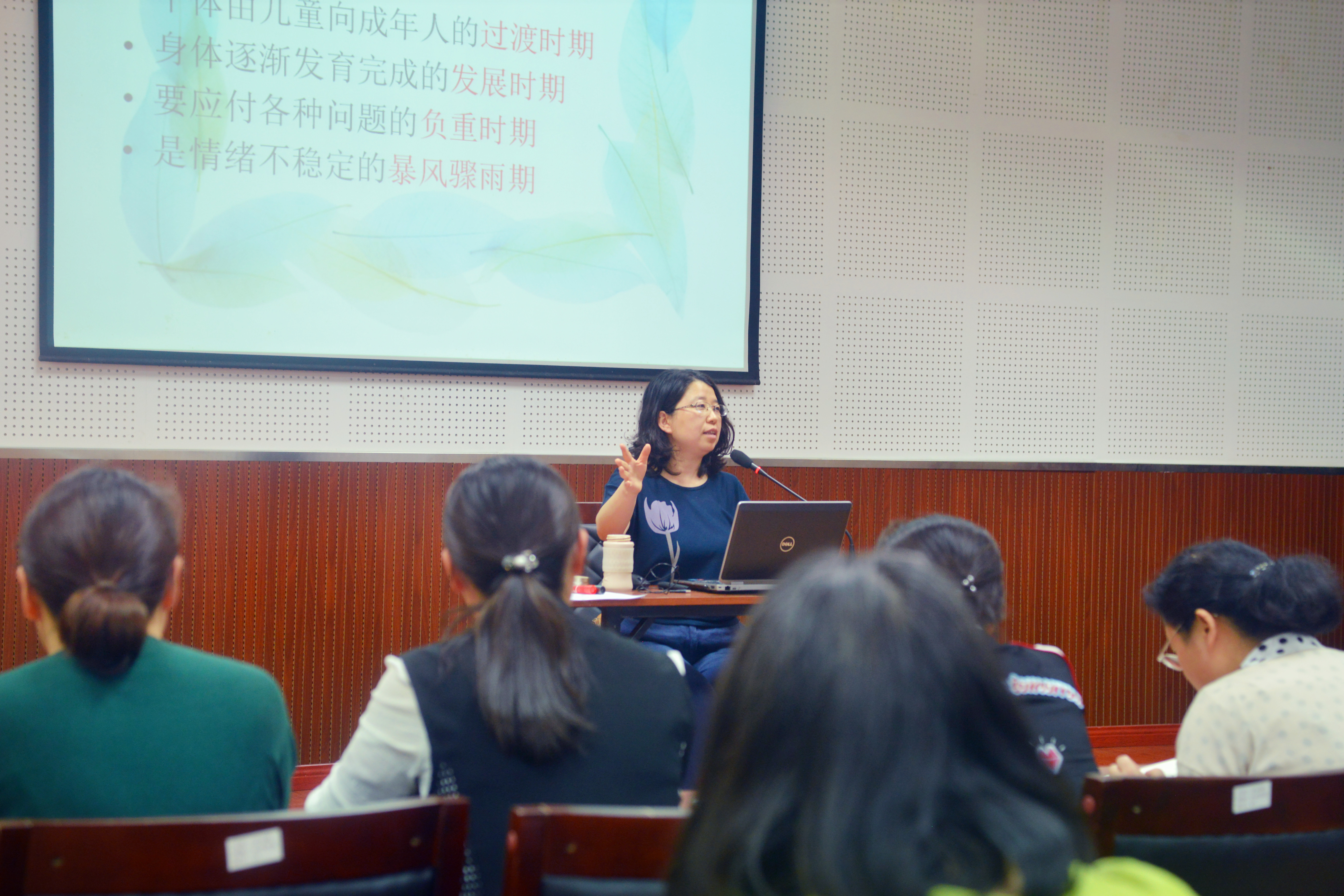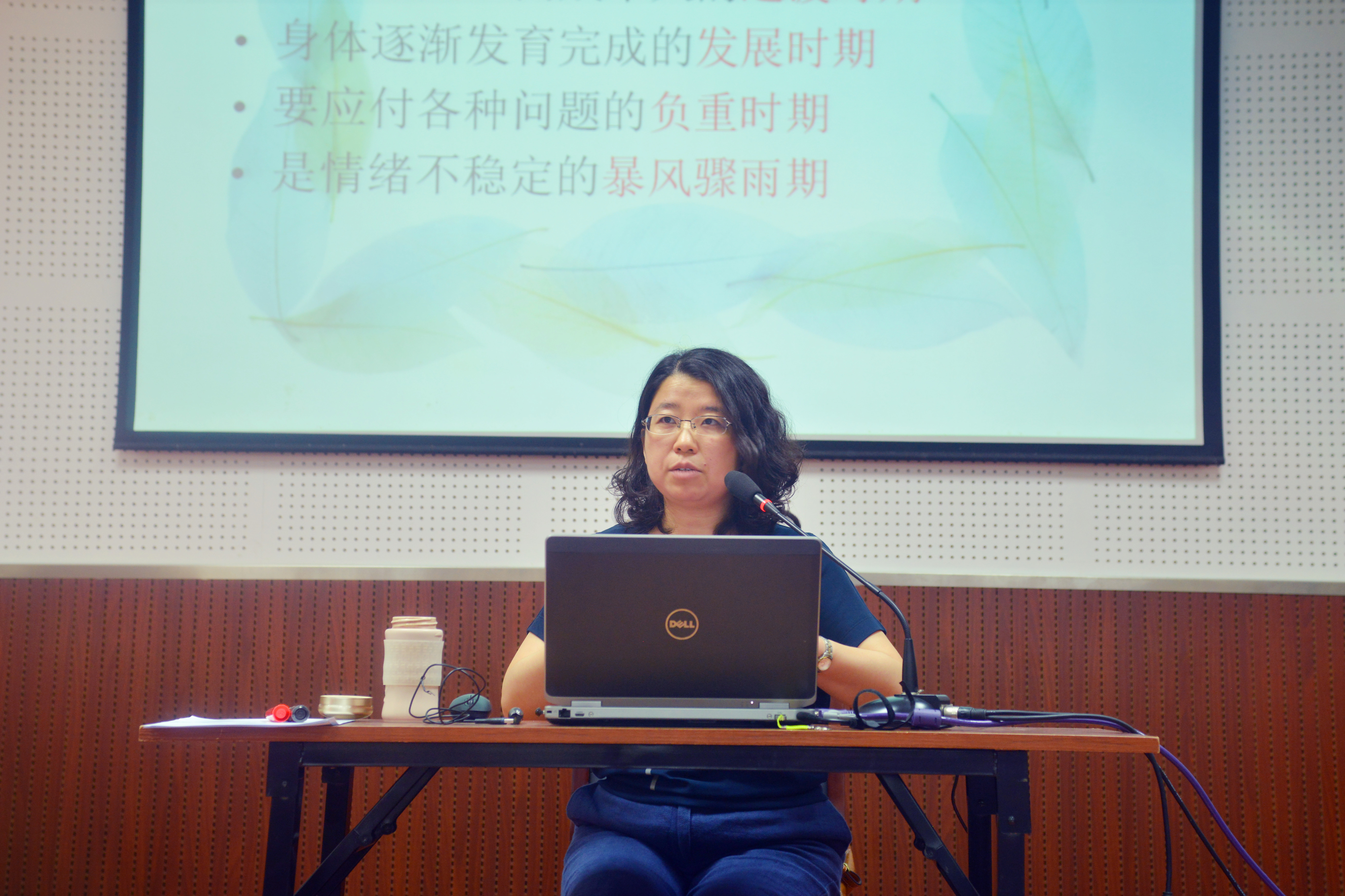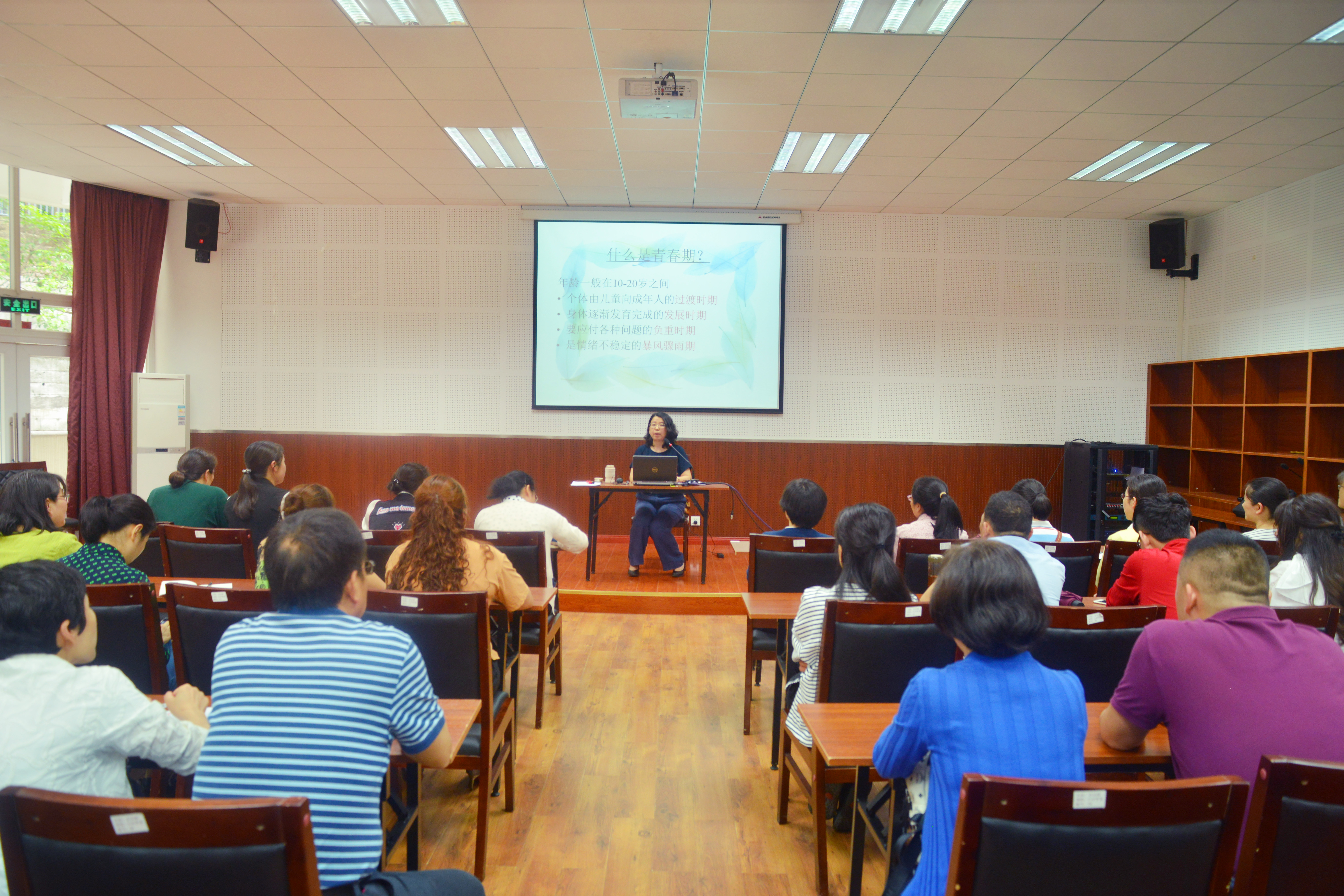 讲座由心理学部党委副书记、专职心理健康教师、叶海燕博士主讲。校内广大教职工及部分学生参加讲座。叶书记从孩子青春期的定义以及青春期学生的生理、心理特征、家长的教育策略四个方面做了详细的阐述。尤其针对每个孩子正常心理发展阶段做了详细的讲解。叶书记强调在青春叛逆期,家长应该充分信任和尊重孩子,不要过多干预孩子的私生活,对孩子的学习,生活交友等,要做场外的“参考者”,而不是场内的“参与者”,放低姿态,与孩子倾心交谈,像朋友一样设身处地为孩子着想,真正了解孩子内心需求,用心去关爱孩子,用情去感动孩子。面对家长的无助、生气、焦虑等一系列困惑,叶书记通过角色扮演、情景展示、现场问答等方式告诉家长们孩子学习的高压力来自于父母过高的期望值,家长应该放下自己的负面情绪,多注重过程而不是结果。不要把自己的期望强加给孩子,并以积极向上的正能量走进、关爱我们的孩子。
