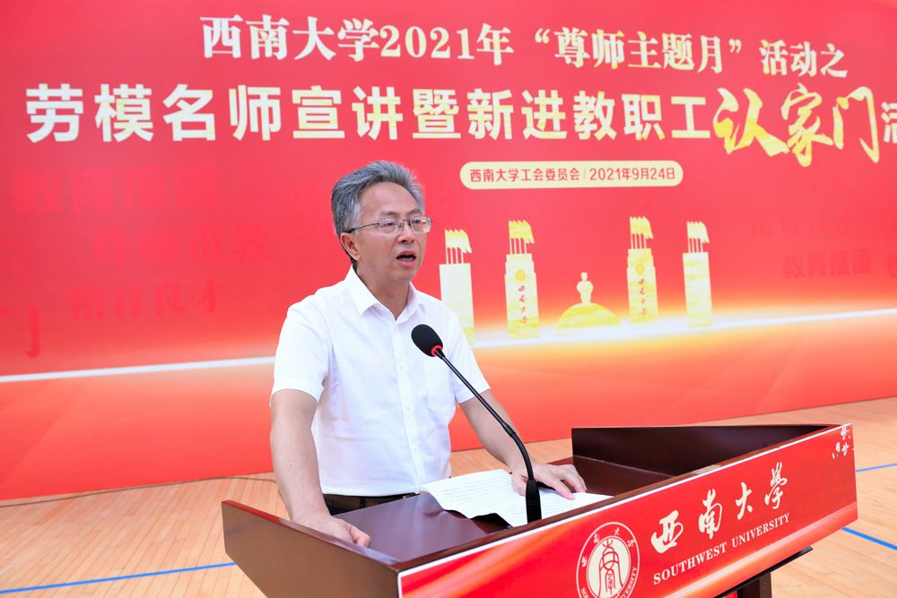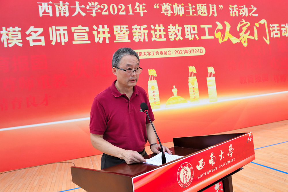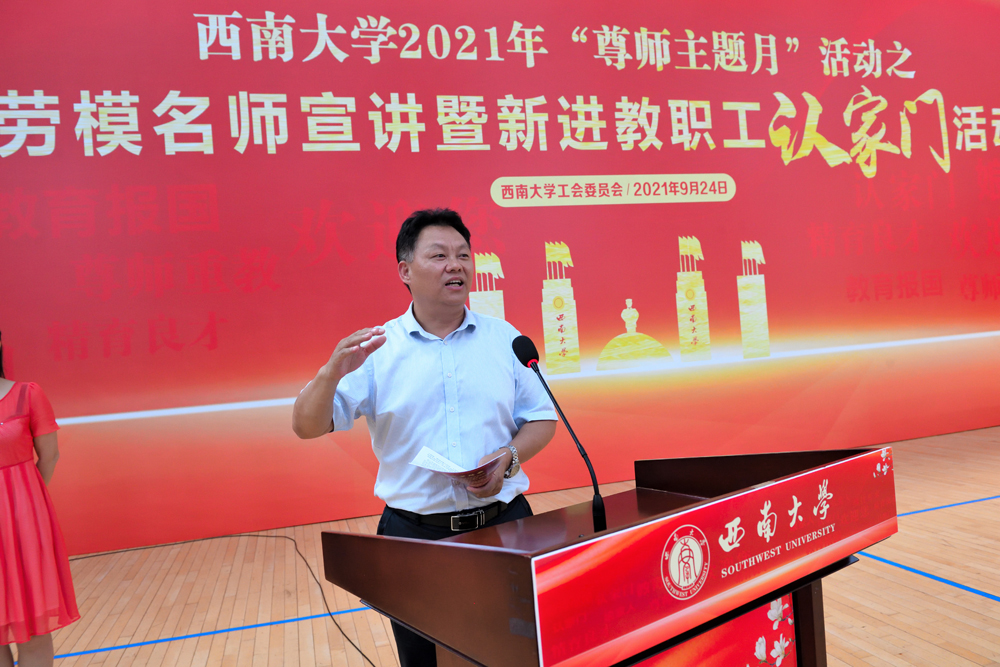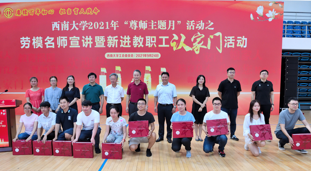 2021年9月24日下午,校工会在学校中心体育馆,举办了“赓续百年初心,担当育人使命”为主题的劳模名师宣讲暨新进教职工认家门活动。校党委副书记、纪委书记李华,相关职能部门领导,各部门工会主席以及2021年新进教职工190余人参加了活动。活动由校工会副主席、教代会副主任李玉兰主持。