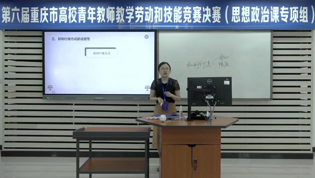 2022年7月8日,第六届重庆市高校青年教师教学劳动和技能竞赛决赛在重庆市工商大学圆满结束。本届竞赛由重庆市总工会、中共重庆市委教育工作委员会、市教育委员会主办,市教科文卫体工会委员会和重庆市工商大学承办。来自重庆50所高校的181名青年教师进入决赛。经过激烈角逐,由学校工会和学校教师教育发展中心推送的我校马克思主义学院教师王绍霞获得思政组第一名,并将代表重庆市参加第六届全国青年教师教学劳动和技能竞赛决赛。