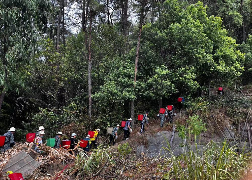 在缙云山山火总攻期间,张斌、黄晓灵、章雷、赵剑、刘峥、郎君等党员领导干部身先士卒,冲在最前线,在朝阳高中隔离带最高处的志愿者中总有教工队队员们忙碌的身影,在最艰难的那段上坡路上,程家伟、唐念、程旭、秦海恒等老师一次背上四个灭火器,得到其他志愿者的惊叹与点赞,陈小虎和兰剑、苏朗、张晴等老师扛着一大件矿泉水往返于人链传送队的终点和山顶之间,辜旺、林晓东、吴欢、韦康、潘东波、汪卫星、周伟、袁宁、宋鹏、周炜、李进、刘洋及其他队员们在人链和高点间往返,在高温酷暑下与山火进行比赛,刚从日本完成驻外任务的谭建川老师一回到学校也马上加入了志愿队伍。MD队队员们和广大志愿者一起坚持到决战时刻,众志成城守住最后的防线。今日缙云山依然巍峨挺拔!为MD队骄傲!为所有志愿者点赞!向消防官兵、武警部队、全体志愿者致敬!