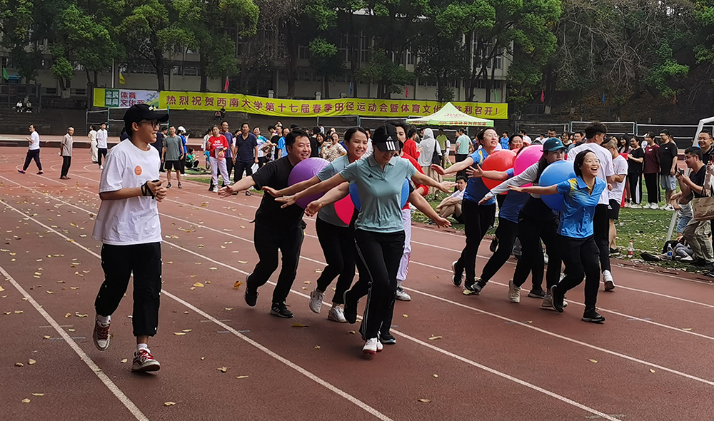根据学校工作总体安排,4月20-22日在北碚校区成功举行了学校第十七届春季田径运动会暨体育文化节,在校体委、校工会的精心策划和组织下,学校教职工比赛圆满完成,教职工近6000人次参加了本届运动会的各比赛项目。