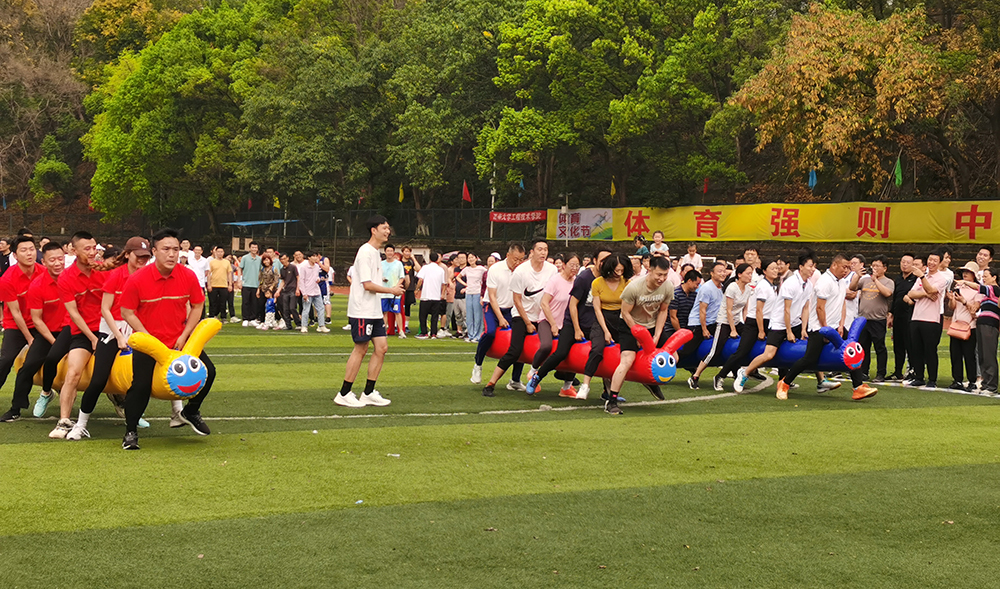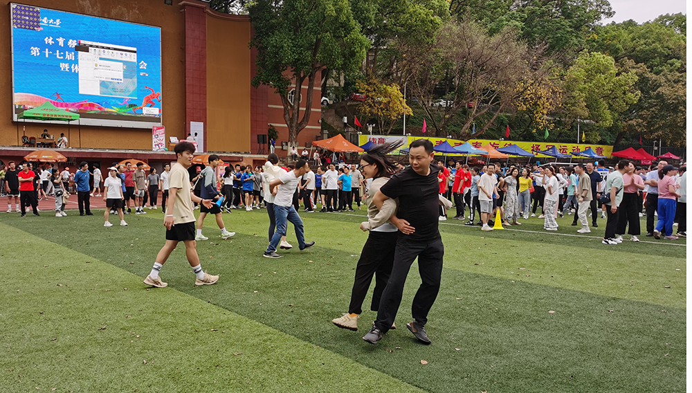 本届运动会教职工项目除传统的个人田径项目比赛以外,还有运球上篮接力、毛毛虫竞速、“贪吃蛇”、心相印螃蟹赛跑等十个集体趣味项目。项目设置集竞争性、趣味性于一体,既有个人竞技能力的较量,也有集体智慧力量和团队协作的比拼。