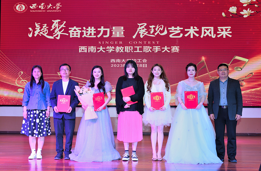 比赛中,选手们用他们优美的音色和热血的激情演唱了各种类型的歌曲,美妙的歌声打动了现场观众,赢得了全场观众热烈的掌声和欢呼。为了比赛的公平公正,校工会特别聘请了五位校外音乐专家担任评委。经过两个半小时的激烈角逐,幼儿园冉江雪、食品科学学院孟庆、教育学部贾添天获得一等奖,物理科学学院林晓东、机关工会叶珮西、附属中学贾瑾伊、体育学院万余、附属小学廖敏伶获得二等奖,农学与生物科技学院薛中华、生物学研究中心何蕾、经济管理学院高俊、人工智能学院陈俊杰、食品科学学院杨希、文学院杨亦花、机关工会黄启庭、机关工会赵鸣阳获得三等奖。比赛结束,校工会领导及部分到场观赛的部门工会主席为获奖选手颁发了证书和奖金。