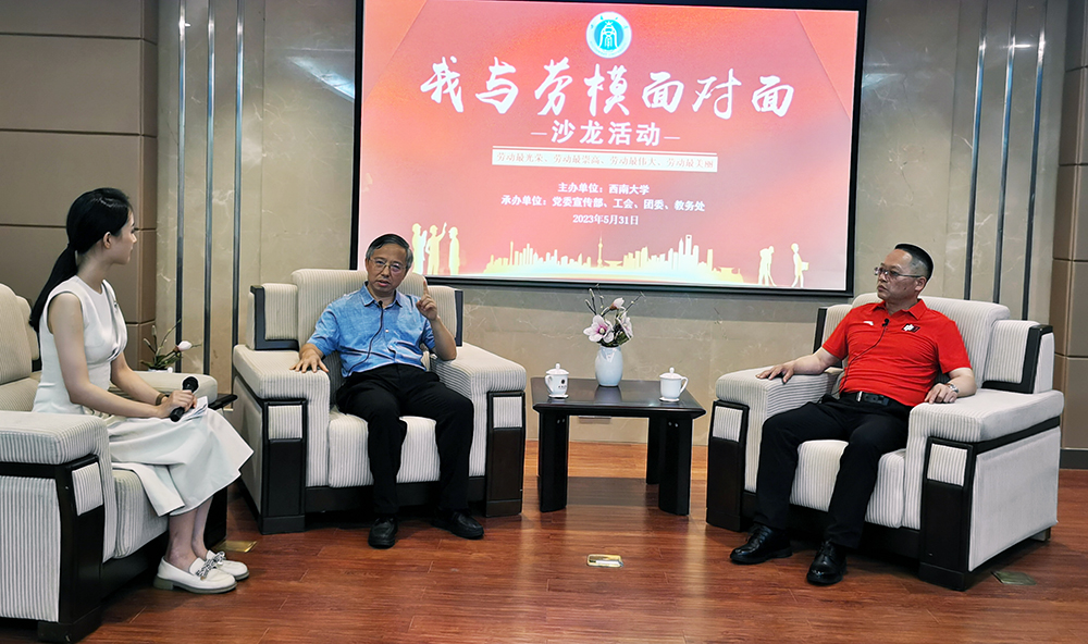根据《PA视讯集团劳动周实施方案》要求,2023年5月31日下午,校工会牵头,协同党委宣传部、团委、教务处共同在桂园丹桂楼7会议室举行“我与劳模面对面”访谈活动。2021年重庆市“先进工作者”何光华教授,2012年深圳世界大学生运动会先进个人、市教科文卫体工会“教体结合”创新人才培养劳模工作室主任李靖文教授与香樟计划40名学生代表面对面共话劳动教育。本次访谈实况将制作成视频在校工会网站面向全校学生展播。