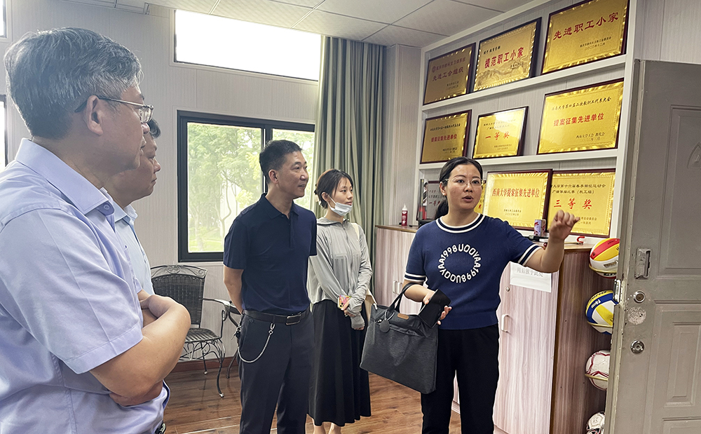 6月20日上午,重庆市教科文卫体工会副主席袁菁霞一行来校检查验收“先进职工小家”创建工作。校工会主席赵子华、副主席李玉兰、副主席任四海及相关工作人员陪同检查。