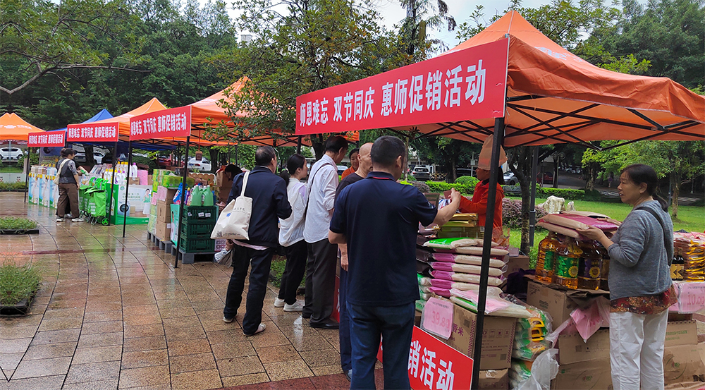 金秋九月,丹桂飘香,在国庆节、中秋节即将到来之际,校工会联动重百新世纪超市和正大集团精心谋划、认真组织,于2023年9月22日至24日在学校开展了“师恩难忘 双节同庆”惠师展销活动。