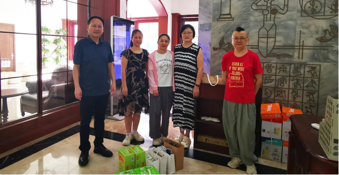 随后,慰问组走进图书馆,看望了读者服务部工作团队,并送上定制款“清凉包”。暑期图书馆依旧为师生提供着便捷的借阅与学习服务,读者服务部成员坚守岗位,各项工作有序开展。