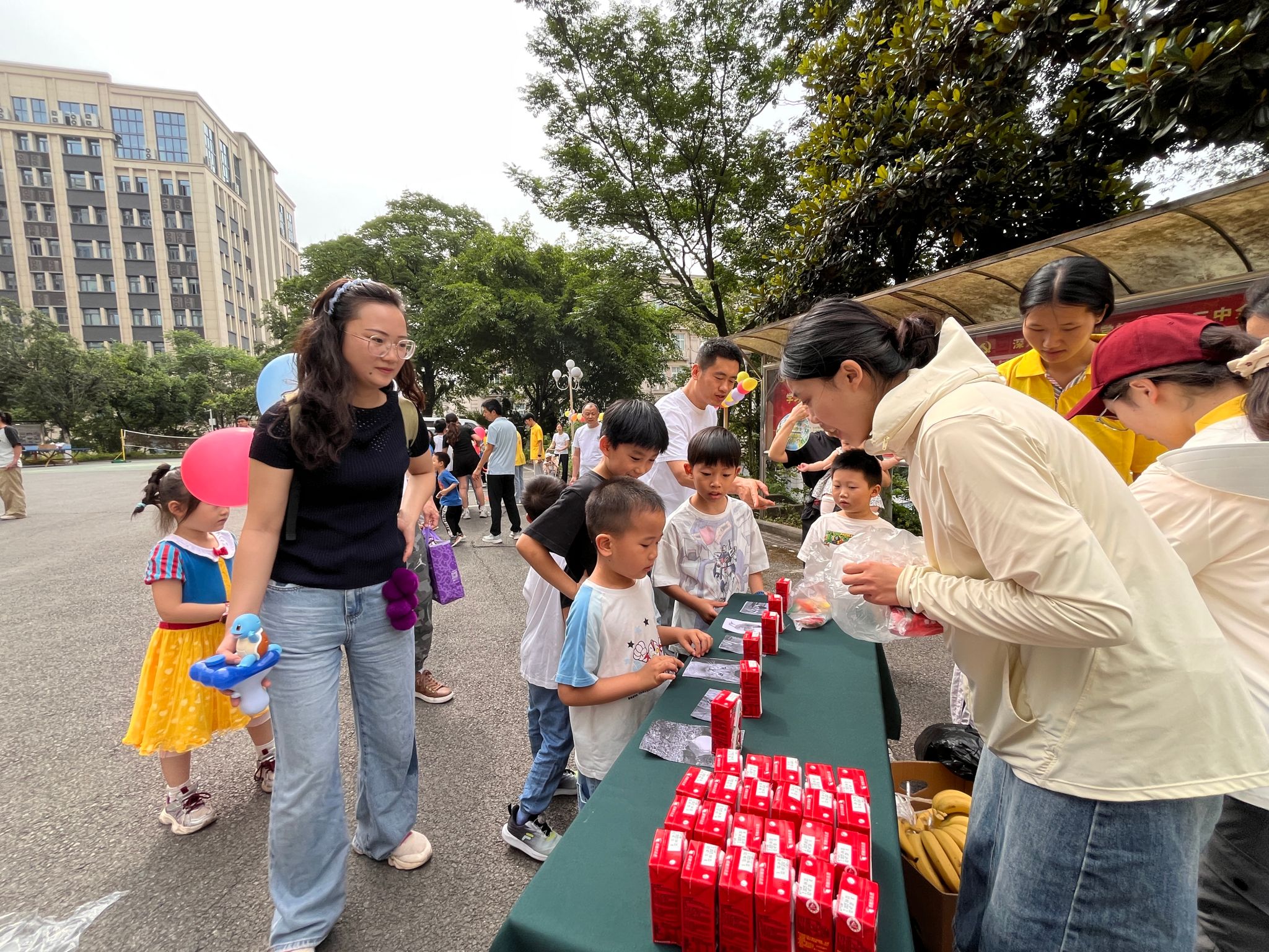 本次活动全程贯彻“安全第一”原则,家长陪同参加,签到的小朋友都能现场领到学院工会精心准备的“六–一”礼包。活动首先开展的是“团结之力”的拔河比赛。孩子们紧握绳索、齐声呐喊,在激烈的角逐中感受团队的力量,在与家长的比赛中收获胜利的喜悦,在奖品分享中感受温暖。接着进行“气球排球赛”的团队活动,孩子们将气球拍向空中,跳跃、拍打都是童趣的体现。团体赛之后进行个人赛,在“动物模仿秀”的赛场上传来了“喵喵”“汪汪”的可爱童音;在“勇往直前”的挑战赛中展现出头晕目眩之时,还有勇往直前的坚定步伐;在“纸飞机梦想家”的活动现场,A4纸变成了一架架纸飞机,从小手向着不同的方向飞去;“套圈圈大作战”场地上有琳琅满目的玩具和零食,孩子们屏息凝神投掷出手中圈子,套中目标的欢呼声此起彼伏。活动的每一个场地都有志愿者的身影,他们分工明确,有序维护现场秩序、发放奖品,给活动增加了一抹艳丽的橙黄。