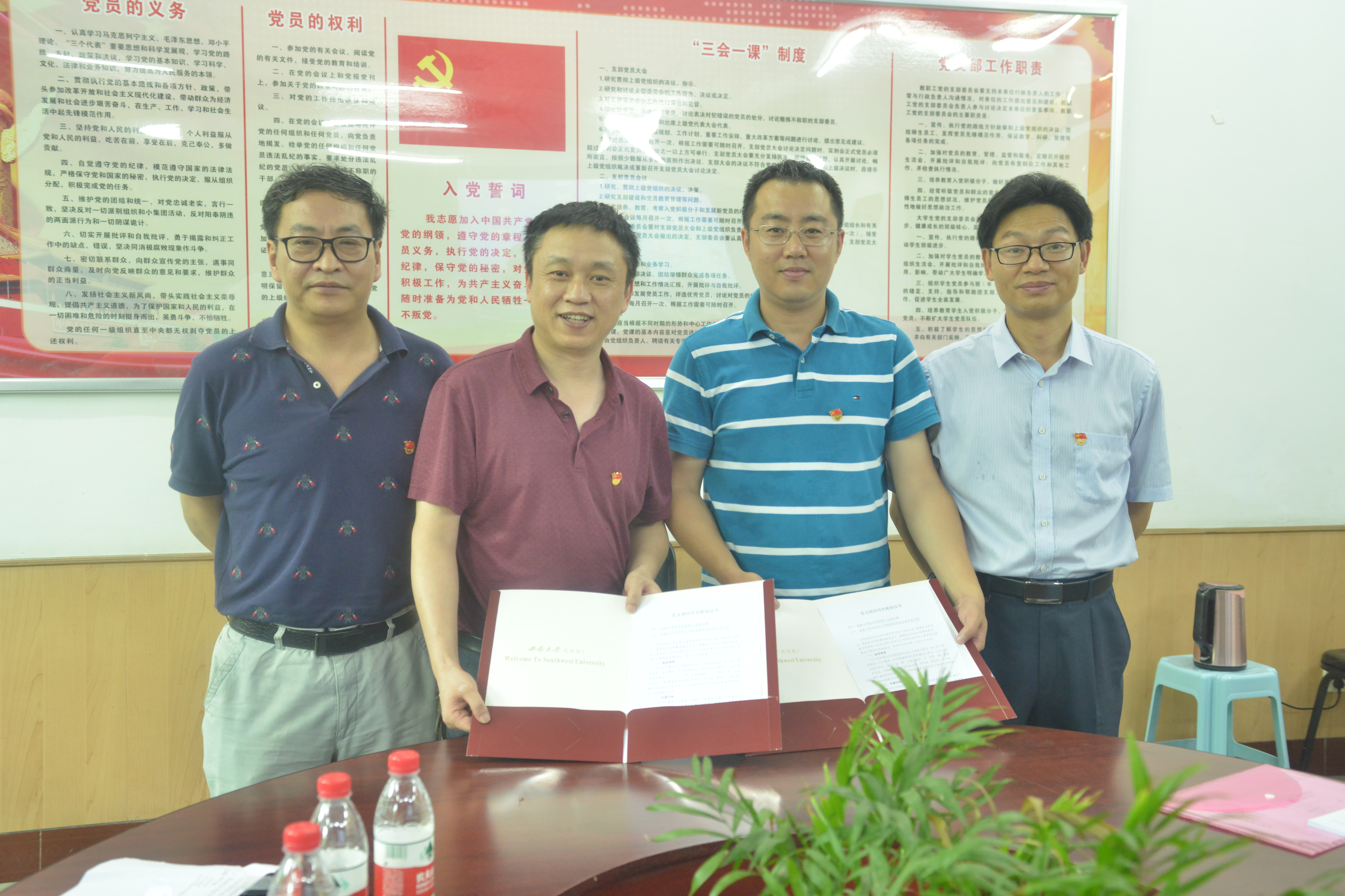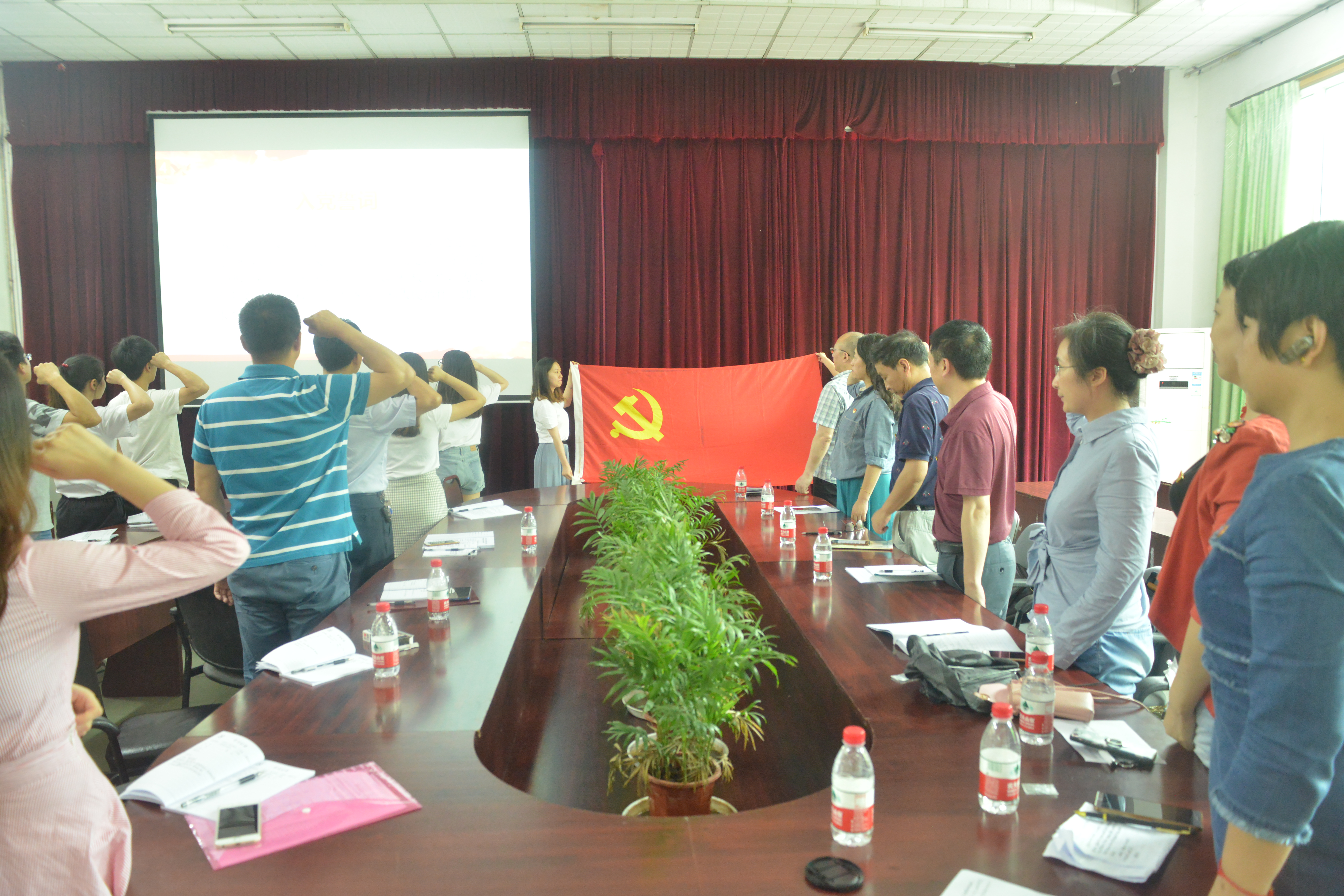 根据党委组织部和机关党委的统一安排,结合支部工作实际,校工会党支部组织全体党员同志于2018年5月11日下午14:30在化学化工学院2教楼3楼会议室与化学化工学院研究生四支部的全体党员开展了以支部结对共建和组织生活学习为主要内容的党日活动。本次党日活动工会党支部应到10人,实到8人,李小琴、喻姗姗同志因公请假。本次党日活动由化学化工学院研究生四支部的武宇坤书记主持。