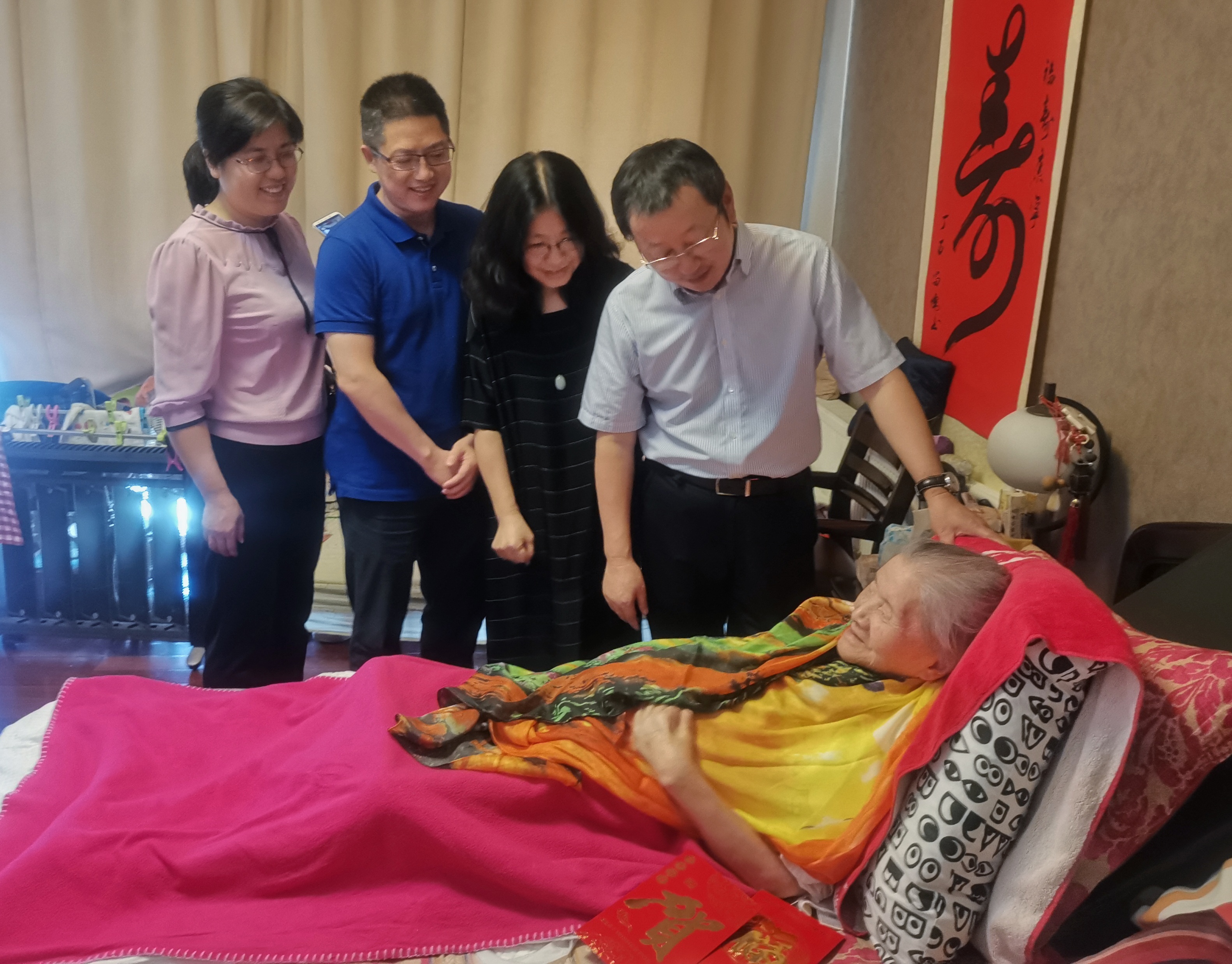 目前,学部退休教工共计42人,100岁以上1人、90-99岁5人、80-89岁14人、70-79岁8人、70岁以下14人,其中高龄体弱、空巢独居约占一半人数。面对退休教工晚年生活状况,学部党委制定了“献爱心、送温暖”退休教工工作总方针,并构建了“党委领导决策、工会行政落实、学生党员志愿者”为一体的具体实施策略,将“献爱心、送温暖”退休教工工作制度化、常态化、质量化。为此,在学部历届党委领导下,学部工会、办公室相互配合,学生党员一对一帮护等方式落实各项工作,努力做到让老同志们老有所依、困难有解、老有所乐、寿终有送等职责。