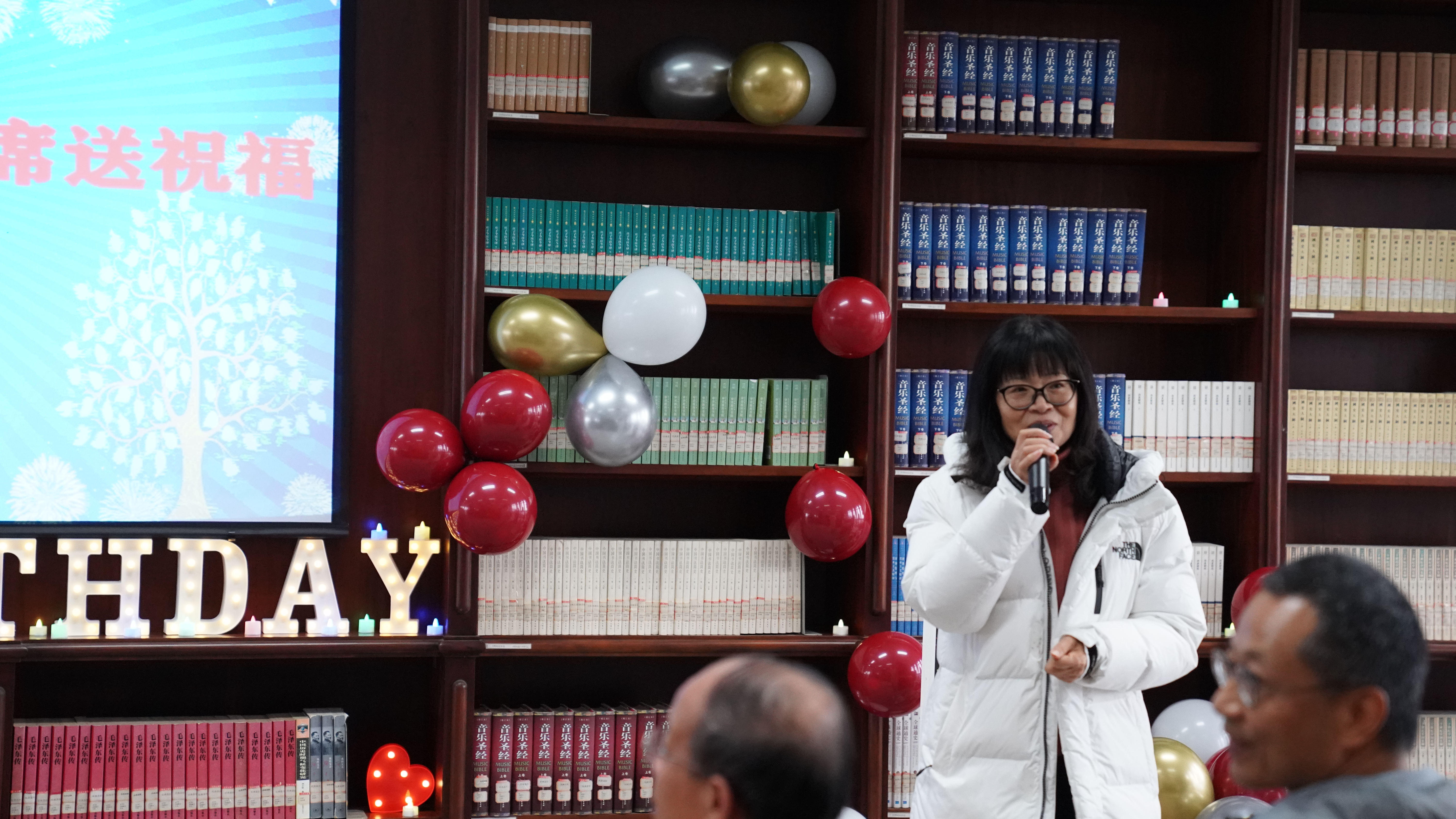 伴随着浓浓的咖啡香气与古韵书香,在图书馆工会主席巫芯宇的主持下,生日会拉开了序幕。图书馆党总支书记周德操向公历7-12月份过生日的馆员们送上了生日的问候,让在座的馆员们深深感受到图书馆是如此温暖的一个大家庭,我们就是相亲相爱的一家人。随后,图书馆党政工领导班子为寿星们送上了生日礼物,全体馆员一起围着定制的生日大蛋糕唱了生日快乐歌,在烛光中,所有人一起许下心愿,祝福祖国。