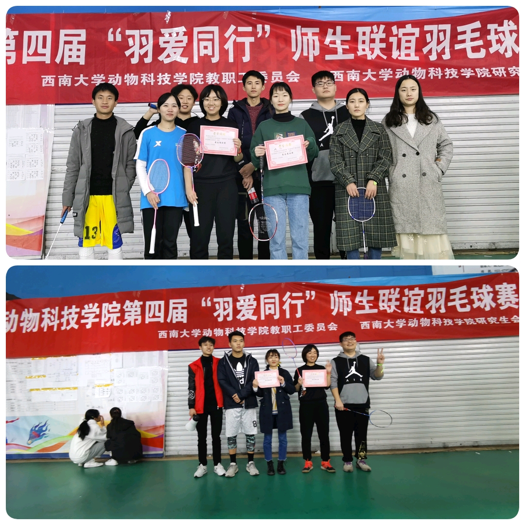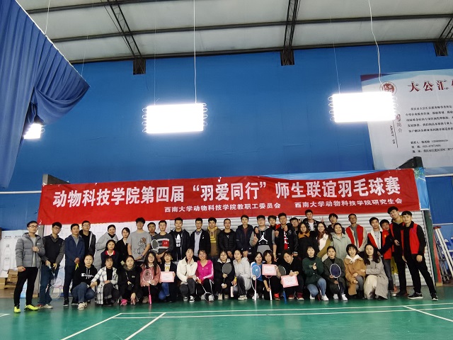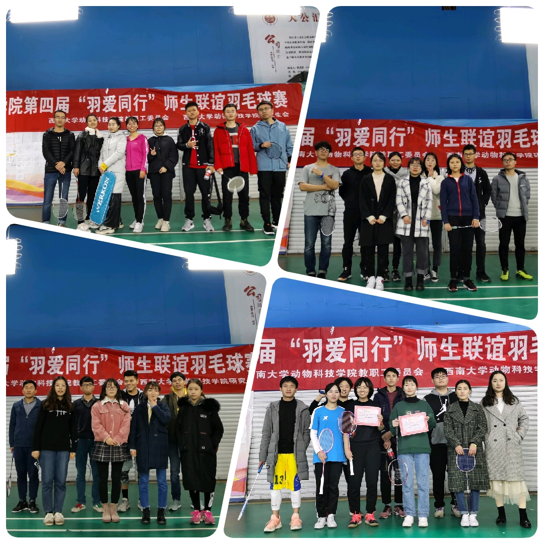 为丰富师生生活,加强学院团队建设,提高大家的运动积极性。由PA视讯集团动物科技学院工会及动物科技学院研究会联合举办的动物科技学院第四届“羽爱同行”师生联谊羽毛球赛于2019年11月29日在校外睿翔羽毛球馆成功举办。