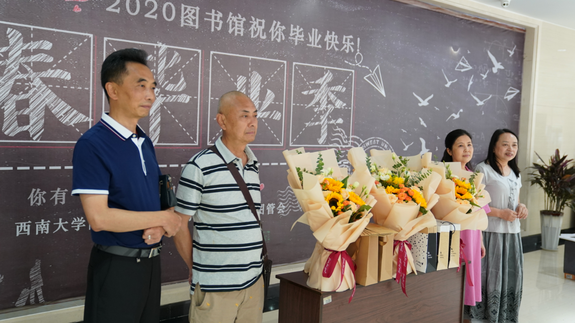 馆领导们代表图书馆向退休馆员们献上了精心准备的鲜花,并与他们一起合影留念。退休馆员们的“青春”一路相伴图书馆的发展,他们的退休“毕业”也必将开启另一段更美好的生活。再次祝愿退休馆员们在未来的日子里青春再启航,温暖、健康和幸福长相伴!