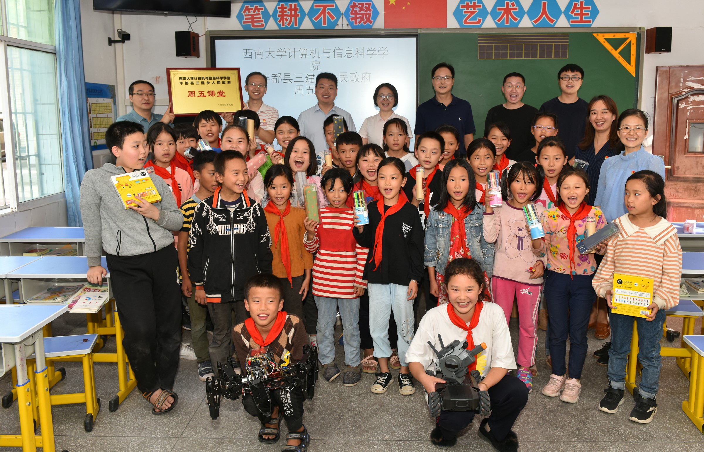 据悉,这已是今年8月以来,计算机与信息科学学院、软件学院赴丰都县三建乡的第二次教师志愿服务活动。未来,学院将还将继续依托教职工服务队、“金纽带”党建活动平台和“及时雨”学生志愿服务团队,在重庆市十八个深度贫困乡镇之一的丰都县三建乡持续开展以教育扶贫、科技扶贫为主要内容的志愿服务,并拟将“周五课堂”和智慧农业为依托的长效扶贫模式推广到云南昌宁等其他贫困地区,为当地打赢脱贫攻坚战,实现乡村振兴托举希望。