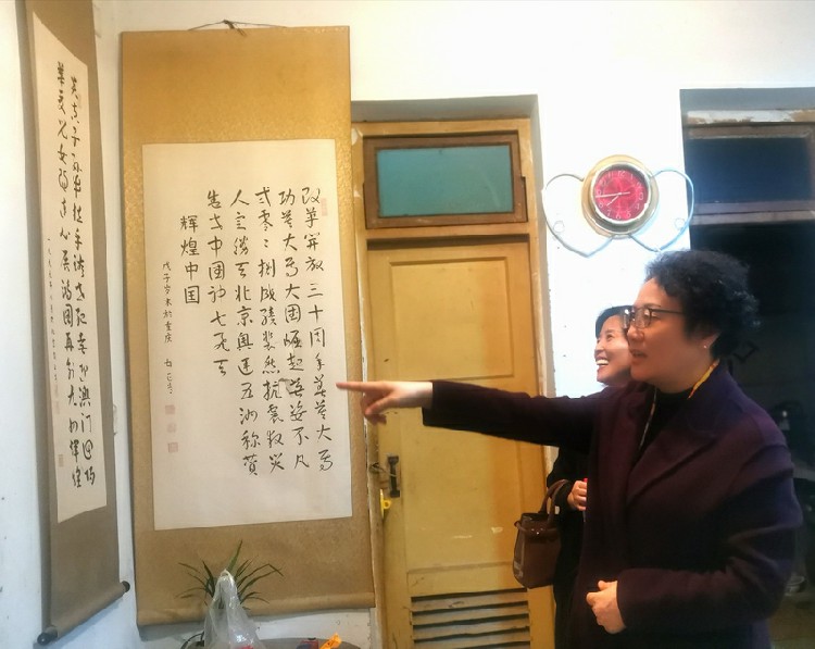 王静书记代表西塔学院感谢甘老为保家卫国、捍卫和平所作出的巨大贡献,亲手为甘老佩戴纪念章,并关切地询问了甘老的身体情况和生活状况,对甘老家人的悉心照料给予了充分肯定;一行人陪同甘老闲话家常,还认真欣赏了甘老获得的奖状、奖章及他本人的书法作品。