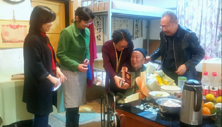 10月27日下午,西塔学院党总支书记王静、副院长张萌、党总支委员梁光志等一行五人,走访慰问了参加过抗美援朝战争的老兵甘正常同志,并为他送上“中国人民志愿军抗美援朝出国作战70周年”纪念章和鲜花。