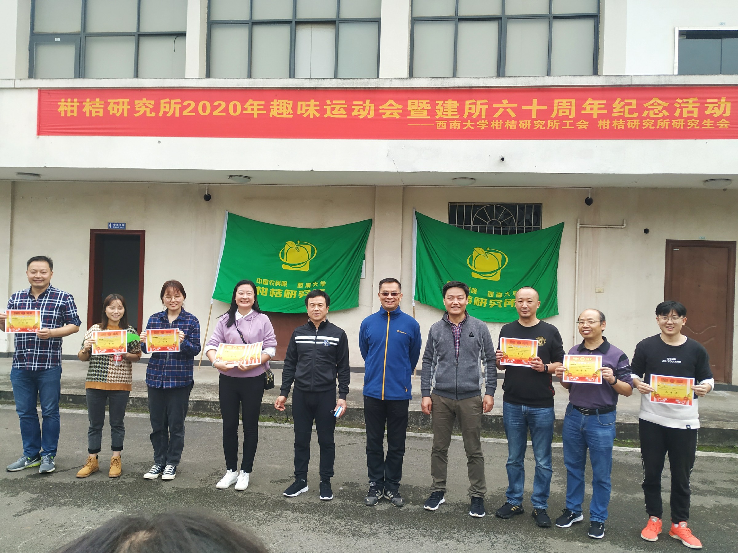10月21日,在柑桔研究所建所60周年来临之际,所工会和研究生会共同主办的师生趣味运动会如期在柑桔研究所球场坝举行。全所师生员工积极组队参加,共有十支队伍,200名左右师生参加比赛。党委副书记黄森博士致开幕词,他希望大家劳逸结合、团结协作,力争上游,庆祝柑桔所60年的丰硕成果,迎接柑桔所跟美好的明天,并宣布趣味运动会开始。