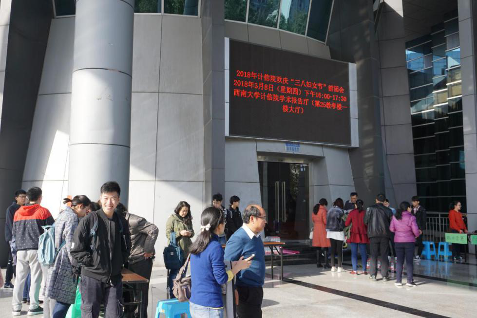 2018年3月8号,为庆祝第108个“三八”国际妇女节,计算机与信息科学学院工会在第二十五教学楼一楼报告厅举办“三八妇女节”特色游园活动,通过丰富多彩的游戏活动,为全院职工带来了学院节日的问候。