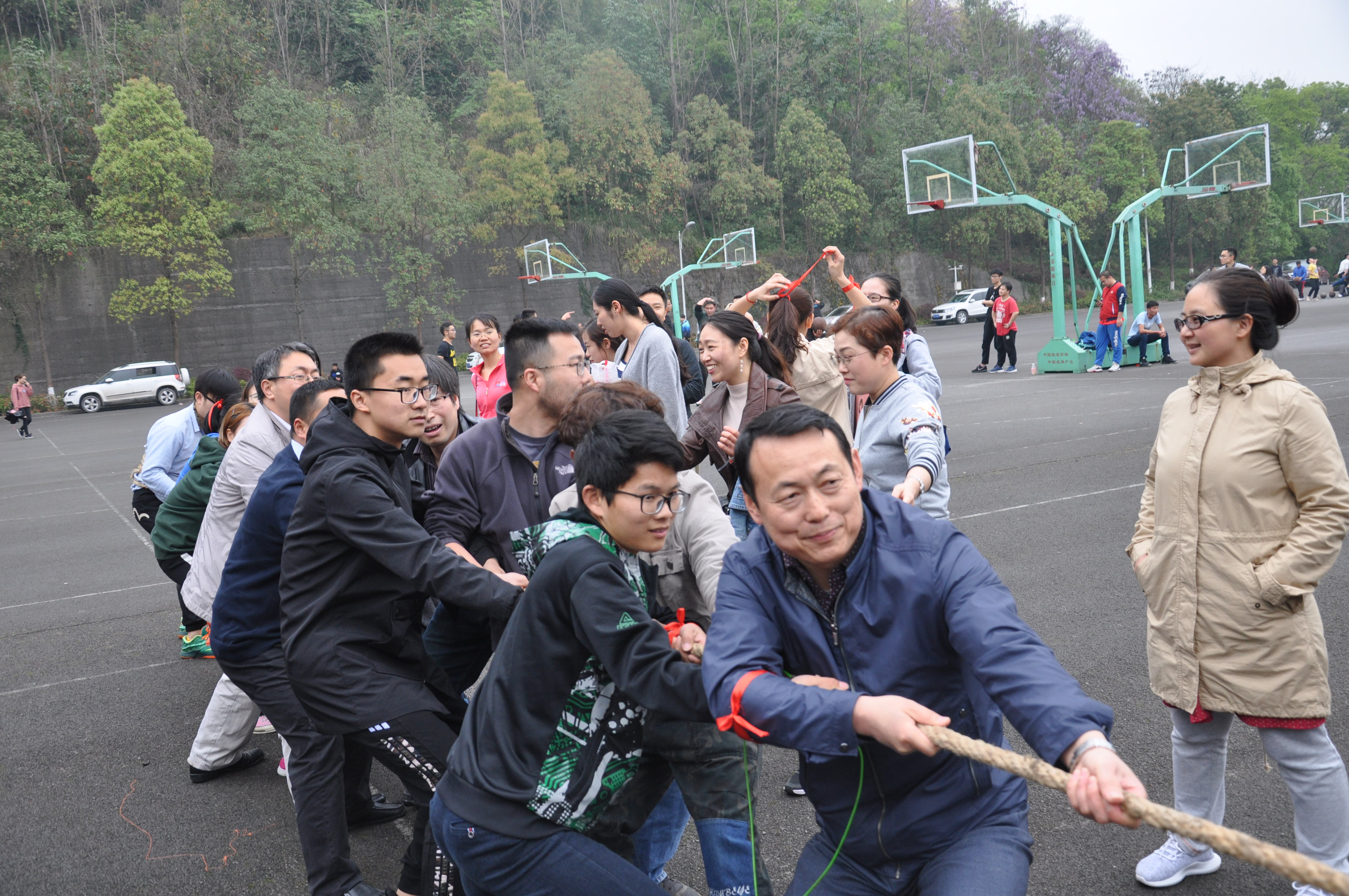 首先开始的是50米接力赛,在速度的竞技中师生间的默契持续升温;一个篮球,在你我手中传递,克服地心引力,奋力向上;圆圆的铁环,在操场上哗哗滚动,同学与老师们一起追忆童年;洪亮的号声响起,由师生共同组成的八人九足大军浩浩荡荡奔向终点;来到团结与力量的比拼,拔河比赛中的呼喊响彻云霄;你来我往,欢声笑语,同学与老师们一个个身轻如燕跳过挥舞的长绳。