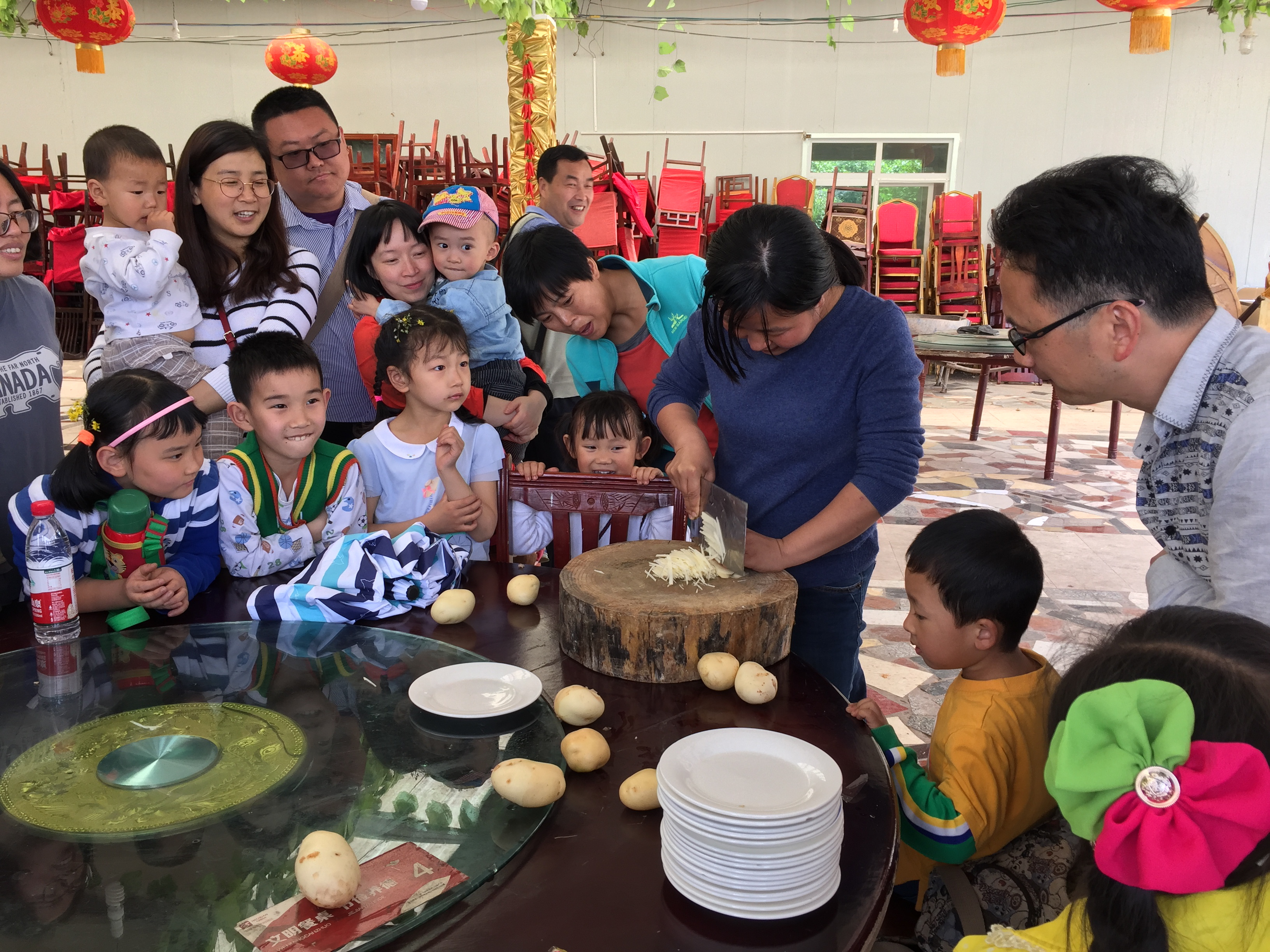 随后,就地取材,选择大小形状相似的土豆,开始切土豆大赛。比赛规则是:先计每位参赛选手一个土豆切丝并装盘的时间,随后按照计时长短进行排序,大众评委综合速度、土豆丝粗细和均匀度进行投票,最后根据得票的多少排定名次。选手参赛积极性高涨,个个跃跃欲试,一边观摩着别人的操作,一边琢磨自己的要领。小朋友们更是热情,当起了拉拉队,击打桌子喊着口号卖力加油。虽然比赛中不乏让人忍俊不禁的小插曲,但过程说明老师们家里家外都是一把好手,谁也不输谁。最后通过大家的慎重投票,许莹竹、谢小玉老师获得了一等奖。谢老师在本次技能大赛中的突出表现得到了一致好评。