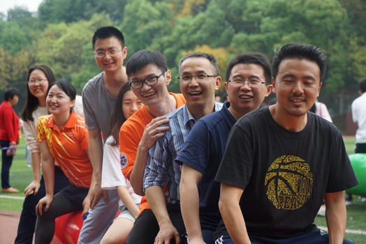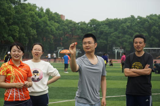 老师们不仅在个人项目中表现踊跃,在集体项目中也不甘示弱。在毛毛虫接力比赛前,学院积极组织训练,从开始的生疏到后来的越来越熟练,这使得比赛场上男女老师相互配合,井然有序,在老师们默契的配合下,学院顺利地在跳长绳比赛中取得了较好的成绩。此外,学院许多老师的身影活跃在在15×60m的迎面穿梭接力比赛中,在多次来回中努力缩小与对手差距,这场激情澎湃又刺激兴奋的比赛让老师们深感集体比赛的乐趣。除此以外,在趣味项目“心心相印”、“趣味足球”、“无敌风火轮”、“篮球运球接力”中,学院老师也踊跃表现。通过比赛的互相配合、互相帮扶,老师们深切地感受到了蕴藏在比赛之后运动的乐趣。