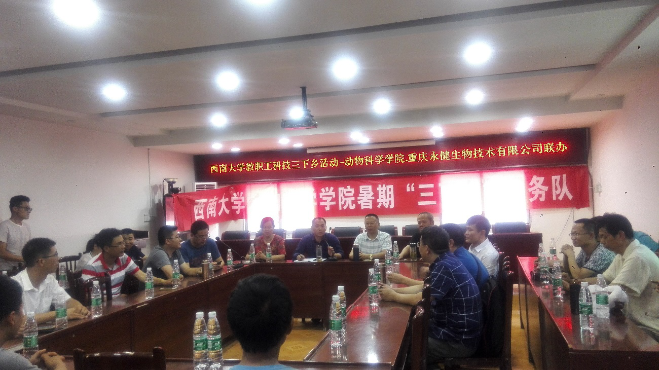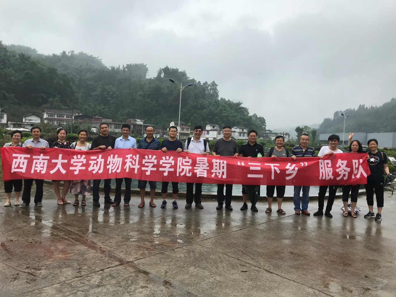学院共组织了64名教职工参加了三下乡科技活动,活动分成了5个小组分别进行。2018年7月18日至7月22日,第一小组由学院党委朱汉春书记与院长刘娟教授带队组织了20名教职工赴重庆市石柱县开展“三下乡”活动。在沿溪镇畜牧兽医站的支持下,服务了多家当地的养殖户,提供了养殖技术,并送去了用于动物预防中暑、驱虫药品,获得了养殖户的好评。第二小组由学院副书记黄庆洲带队组织了11名教职工赴重庆市奉节县开展“三下乡”活动;服务了巫溪县城厢镇杨平村才志伟养殖有限公司和奉节县鑫鼎农业冷水鱼养殖基地,提供了技术服务并联合重庆方通动物药业有限公司发放了价值千余元的药品,取得了较好的社会效果。第三小组由周克勇副院长和杨远新主席带队组织了8名教职工赴重庆市城口县开展科技“三下乡”活动,在城口县复兴街道柿坪村开展了畜牧养殖科技咨询会,服务了多家当地的养殖户,并深入养殖一线服务了城口县远辉农业发展有限公司,在服务过程中,我院教职工发挥了专业技能特长,给养殖户指出了养殖关键技术,并送出了价值千余元的保健药品和饲料添加剂,获得了当地养殖户的称赞并希望长期进行帮扶指导工作。2018年7月26日至29日,第四小组由周沛老师和孙海军老师带队组织了8名教职工赴重庆市丰都县开展科技“三下乡“活动;活动中服务了当地肉牛养殖企业丰都恒都肉牛公司,我院教职工送去了养殖技术并发放了动物药品,取得了良好的社会效益。2018年8月15日-8月18日,第五小组由段彪副书记和周朝伟老师带队组织了17名教职工赴四川省雅安市开展科技”三下乡“活动,在活动中水产专业教职工与雅安市农业局、雨城区水务局有关领导举行了座谈,就关于当地的水产养殖现状、产业发展展开交流,同时开展了与养殖户、政府领导、畜牧兽医站等人员的座谈交流;免费发放了宣传资料、兽药、饲料添加剂等。还服务了天全瑞兆渔业公司,参观了企业送去了养殖技术,获得了企业的好评。各小组在三下乡活动中均深入生产一线,针对养殖户的养殖问题进行了详细的解答,给出了预防方案和解决措施,为当地的畜牧养殖提供了技术支持。取得了很好的社会效果,当地多家媒体进行了新闻报道,扩大了我院的科技服务影响力。