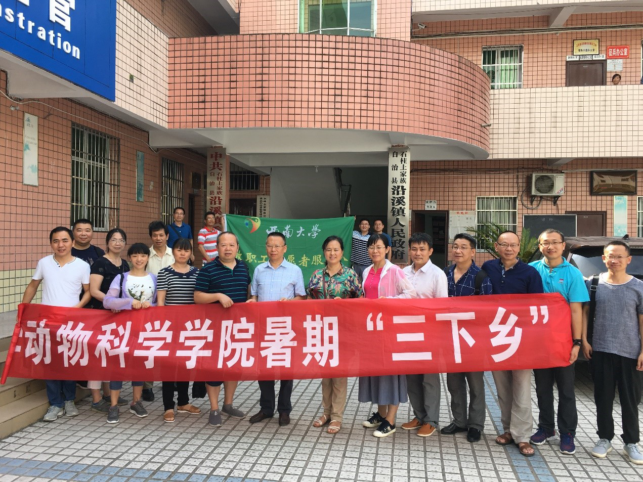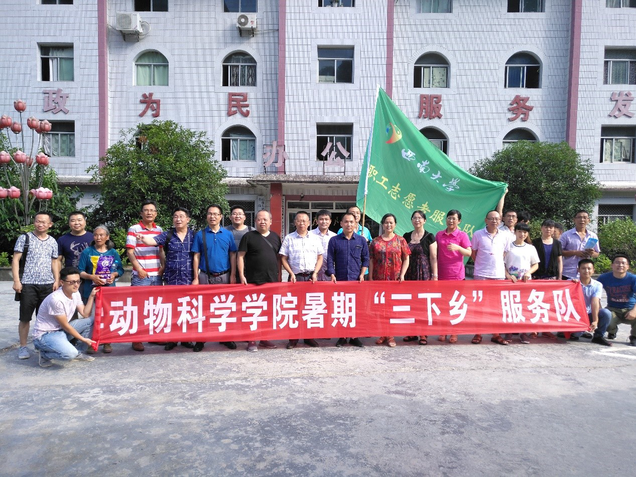 PA视讯集团动物科学学院为贯彻落实教育部《高校思想政治工作质量提升工程实施纲要》构建“十大”育人体系之实践育人质量提升体系,坚持理论教育与实践教育相结合的原则,充分发挥教职工志愿者协会的作用,引导广大教职工带头践行社会主义核心价值观,促进地方经济建设和社会发展,推动志愿服务工作的常态化、专业化、品牌化、深入化,根据学校工会《关于开展2018年教职工志愿者暑期 “三下乡”活动的通知》文件要求,结合学院专业特点组织开展了2018年教职工志愿者暑期“三下乡”活动。