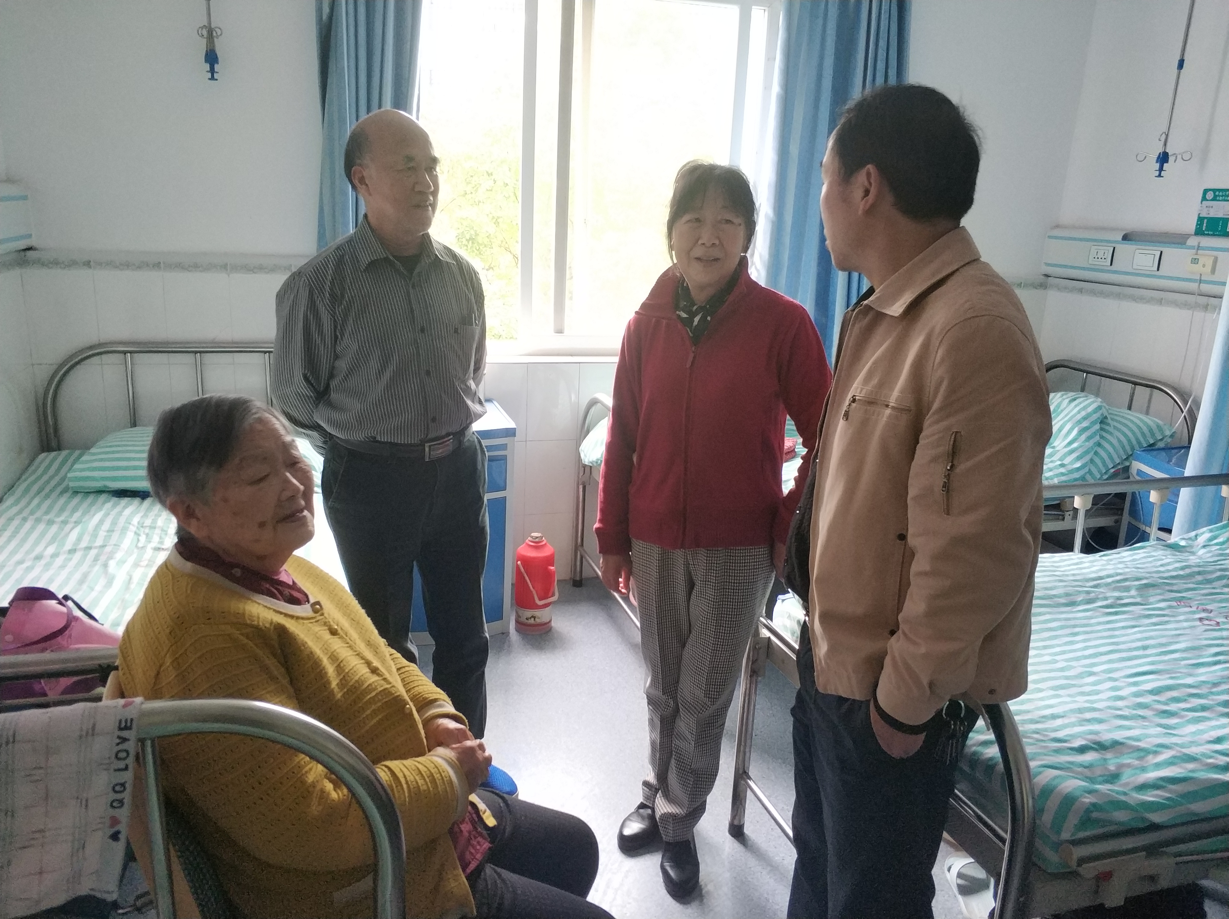 10月17日下午,学院党委书记毕均明、退休教师组长罗庚荣先后到学校养老康复中心及学校医院,给我院常年卧病在床的两位高龄退休教师宁小竹老师及彭仁先老师带来节日的慰问,了解两位老师的身体情况、住院环境、医疗条件等方面,祝福他们早日康复、与家人团聚。教师家属对学院的关怀及慰问也表示十分感动。