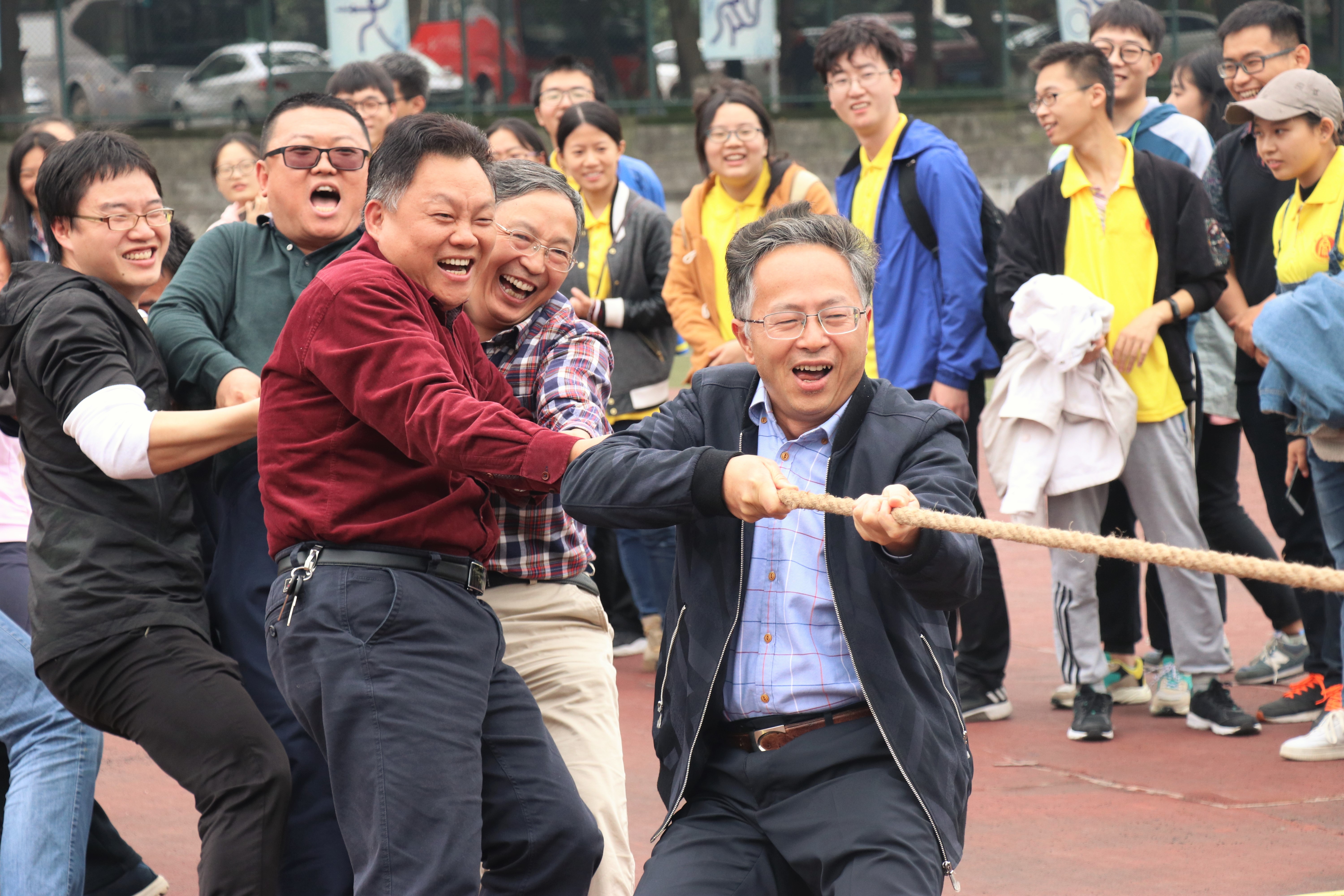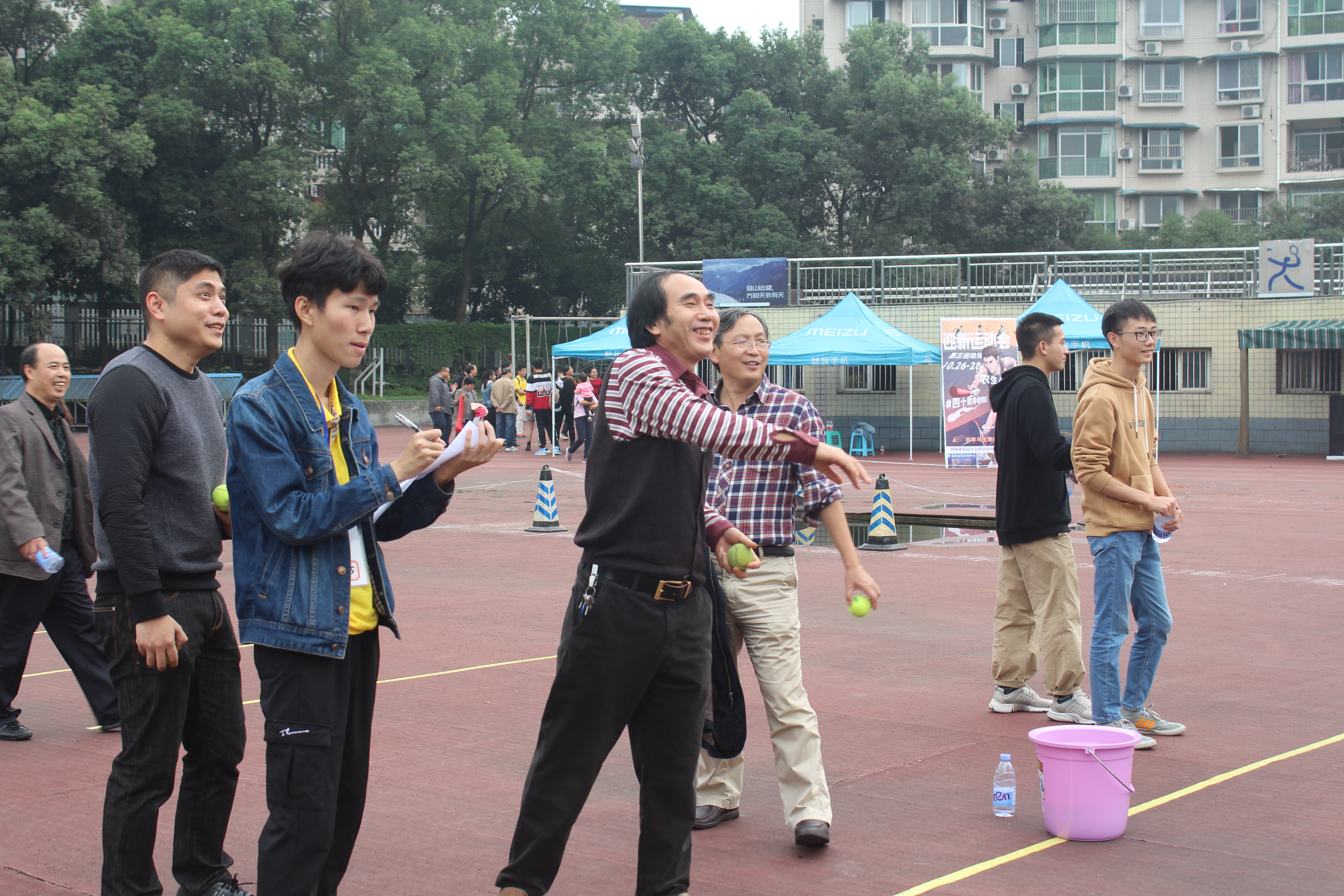 10月26日下午2点,农学与生物科技学院工会在院学生会协助下,举办了2018年度教职工运动会。赵子华书记热情洋溢的致辞后,唐章林副院长宣布运动会开幕。师生拔河赛立即把运动会的热度提升至沸点。在观众们激情的加油呐喊声中,教师队又以2比0轻松战胜了学生队。随后以工会小组为单位,开展了三个集体项目:龙凤贯绳、摸石头过河、铁环接力。老师们团结协助、奋力拼搏,最后区域小组大获全胜,将三个项目的第一收入囊中。结束集体项目比拼后,老师们各显神通,参加了5个个人项目的比拼,包括1分钟跳绳、1分钟踢毽、掷飞镖、足球射门、垒球掷准。大家都享受运动,收获快乐。结束所有项目后,大家还意犹未尽,聚在一起总结经验教训,期待明年运动会上的更多精彩。