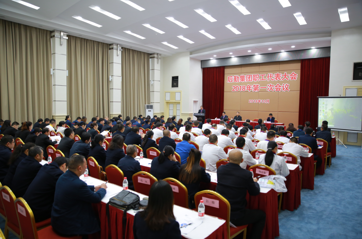 10月25日下午2:30,后勤集团在桂园金桂厅召开了集团职工代表大会2018年第一次会议,专题审议《后勤集团人事及薪酬改革实施办法(试行)》(以下简称《实施办法》),并进行民主投票表决,希望进一步推进后勤集团的改革发展。集团班子成员、职工代表、列席代表共计107人参会,副校长、分管校领导王永才出席了大会。大会由集团职代会主任戴瑞君主持。