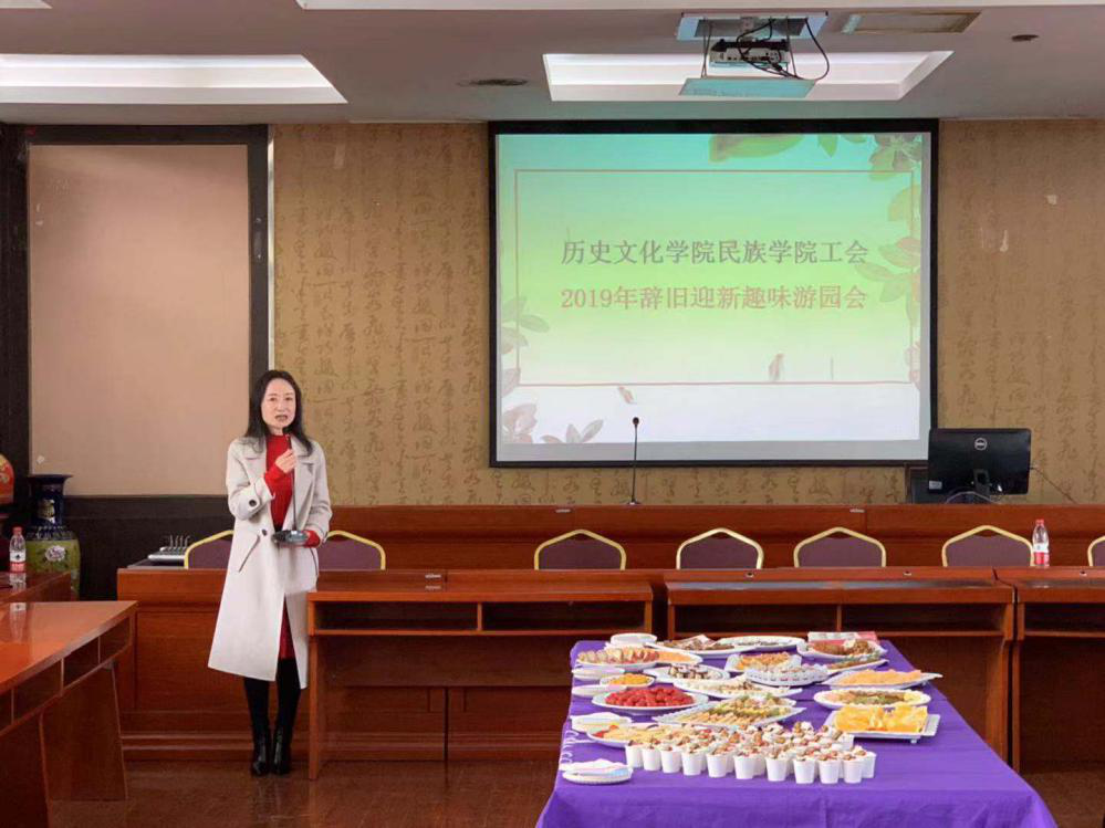 1月7日下午,历史文化学院民族学院工会在荟文楼7楼报告厅举行2019年辞旧迎新趣味游园活动,学院工会会员近70人参加了此次活动,游园活动在工会主席、委员和组长的祝福中拉开帷幕。