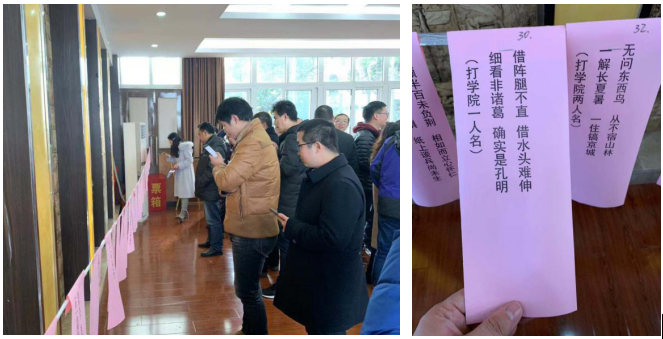 2018年新入职的青年教师做自我介绍,并为大家带来小合唱《明天会更好》。 随后,游园活动正式开始,包括了猜谜活动和游戏环节两大板块。猜谜活动吸进了很多老师的驻足思考、热情参与,特别是以学院老师姓名为谜面的谜语深受广大会员的欢迎。 游戏环节包括了“弹珠快递”、“猜词接龙”、“收放自如”、“幸运乒乓”四个游戏,各位会员自由组队积极参与,现场气氛热烈。