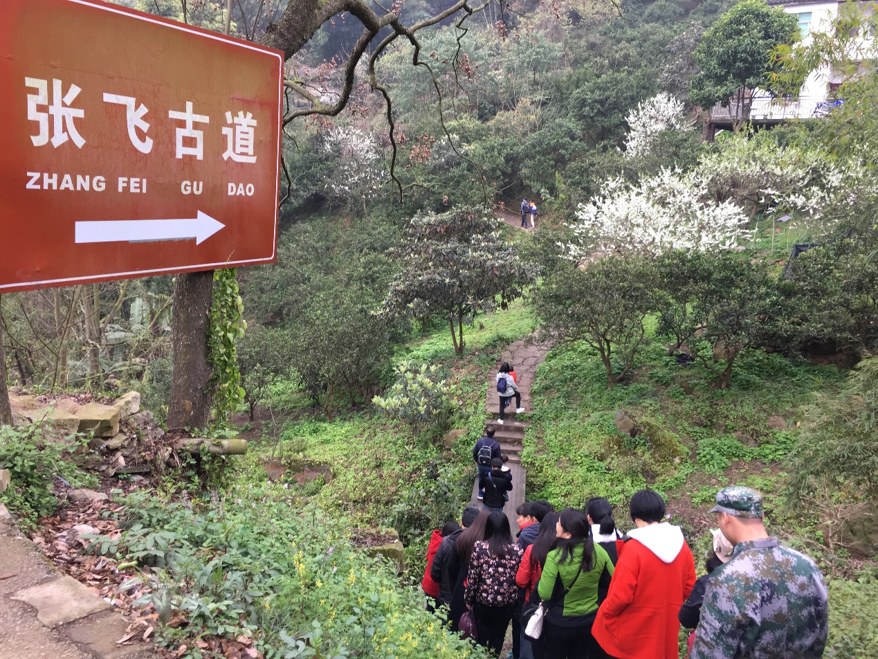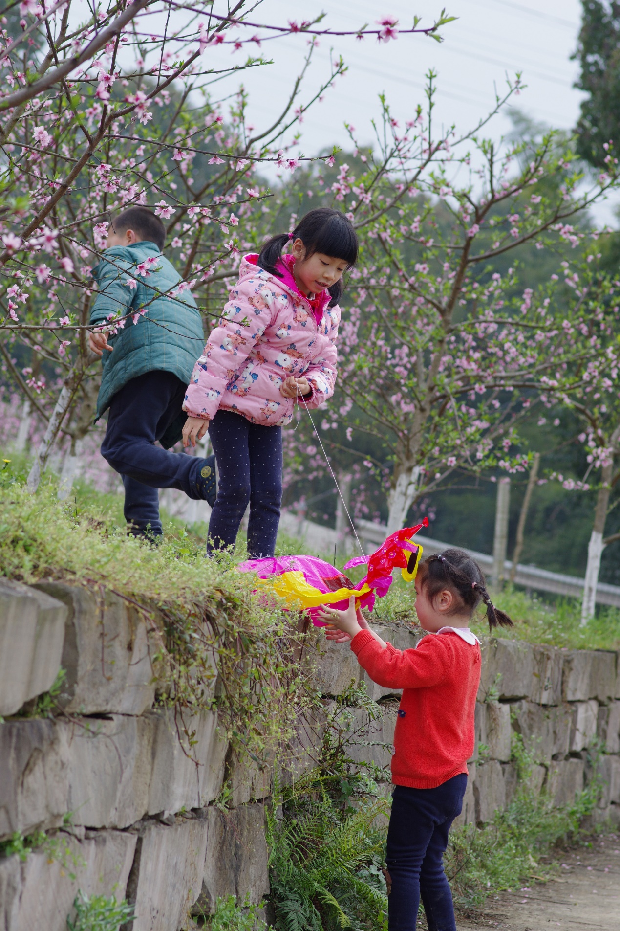 上到山顶的张飞古道度假酒店用餐后稍事休整,大家又奔向盛开的桃花园。大人们在桃树林中赏花、拍花、采野菜忙得不亦乐乎,随行的小孩则在林中追逐嬉戏尽情释放着孩童的天性。忽如一阵微风拂过,花瓣飘摇而下,好一幅人面桃花相映红的绝美画卷。