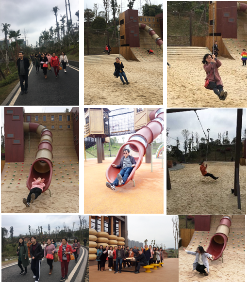 活动过程中,老师们在春天雨后初晴的阳光下快速行走,动作灵活的滑滑索和攀爬滑滑梯,重拾童趣,解放身心。整个过程欢声笑语不断,童趣尽显。让老师们在回味童趣、锻炼身体的同时,放松身心,增进友谊。