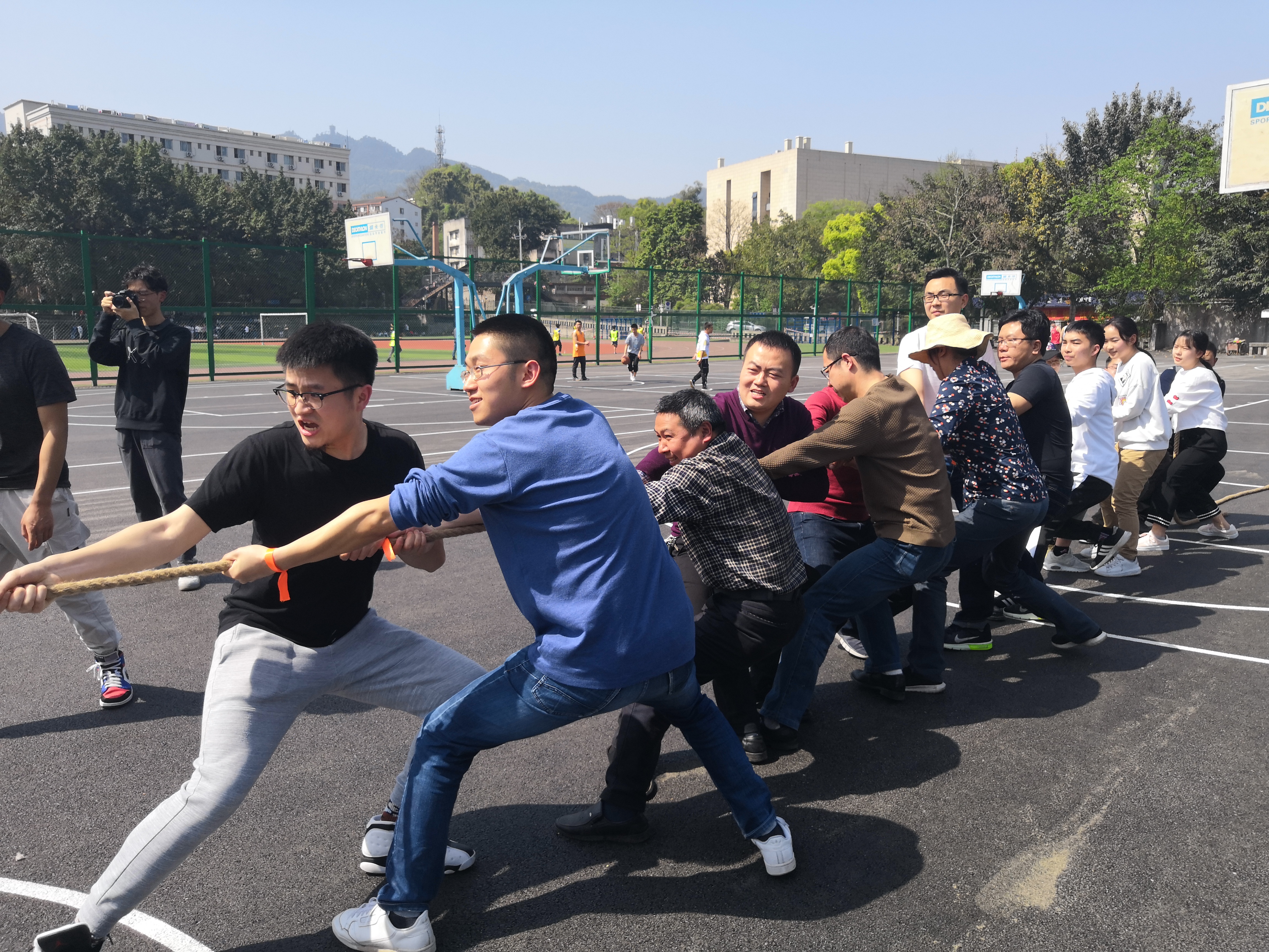 参加此次趣味运动会的运动员以各自专业为基础,分为水产,动医,动科三组,每组成员由该专业的教师与学生共同组成。首先举行的是师生拔河比赛,随着裁判员一声哨响,比赛正式开始。教师与学生双手挽着长绳保持身体平衡,并喊着口号奋力的将绳子拉向自己队伍。起初各支队伍旗鼓相当,运动员们采用了不同的战术,有稳中求进的、也有大步跃进的,大家竭尽所能冲向目的地。虽然中途有不少运动员摔倒在地,但是为了集体的荣誉他们立即爬起,奋勇直追。