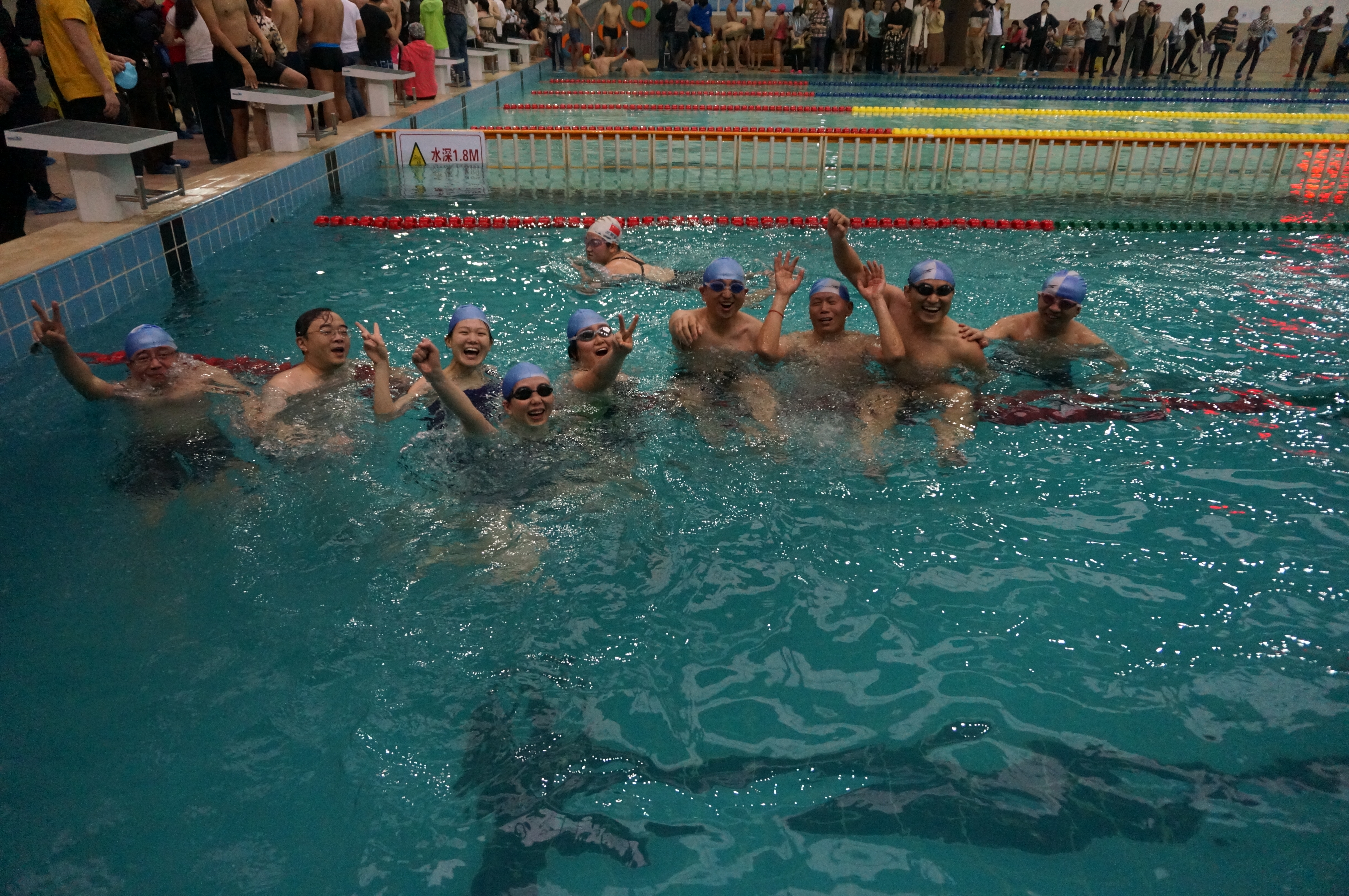 下午的比赛更是激动人心,50mX10男女混合游泳接力赛,在全校几十支队伍甚至有外国选手参与的竞争中,我院参赛老师奋力拼搏、默契合作,院长温涛、工会主席杨映忠全程助威,观众喝彩声声洪亮。在激烈的你追我赶中,经管院教工队以9分17秒69的成绩勇夺第三。这是老师们的荣誉,更是经管院上下一心、团队凝聚的胜果。