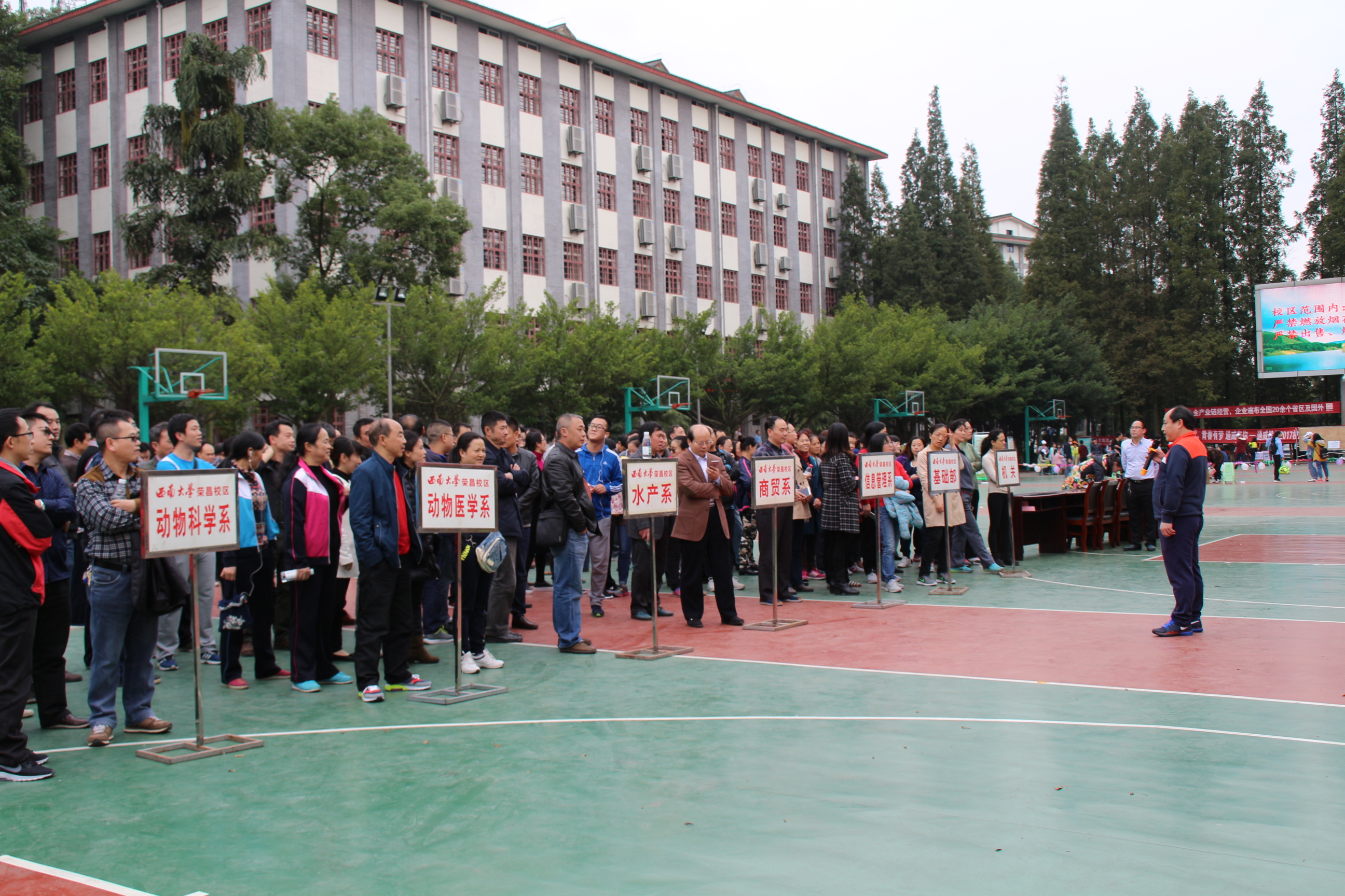 出发前,在校区第二教学楼门前篮球场进行简单的开幕式。开幕式由校区工会主席包尔泉主持,包尔泉主席介绍了此次活动的相关情况及注意事项。校区党工委副书记、纪工委书记周国安同志在活动开幕式上讲话,指出此次活动是校区工会转变工作方式的一次活动,活动覆盖面大,参与人数多,旨在增强广大教职工强身健体的意识,激励大家走出办公室,积极参加身体锻炼,用最绿色低碳的方式,走进大自然,保持健康的体魄,并借此活动进一步推动全民健身。