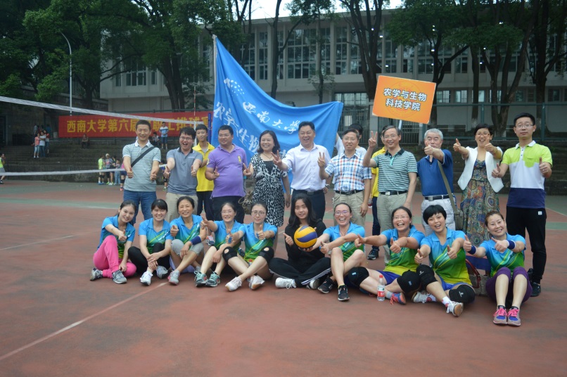 比赛现场,农学与生物科技学院党委书记赵子华、院长何光华、副院长唐章林、副院长张建奎率全院百余名师生组成的拉拉队为我们的队伍加油鼓气、呐喊助威,为她们提供了坚定有力的后盾。学院党委副书记方凤玲、院长助理戴秀梅领衔教职工女子排球队的所有老师们在赛前积极训练,在前期小组赛和淘汰赛中认真应战,为决赛做好充分准备。
