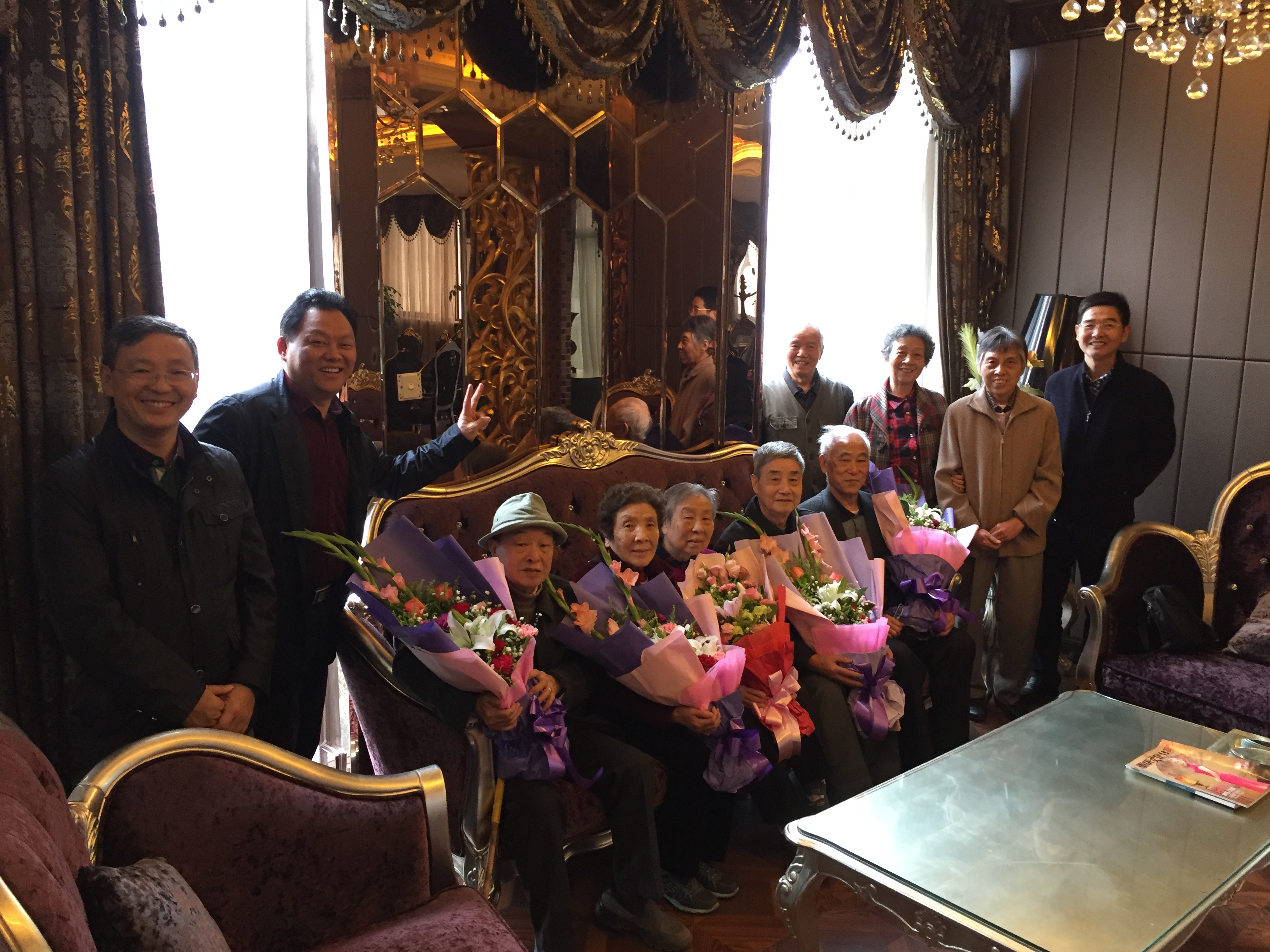 金秋时节,离退休教职工喜迎重阳节,农学与生物科技学院组织了丰富多彩的尊老敬老活动。10月20日离退休老师一行到龙兴“民国街”秋游,回忆旧时重庆,感慨当今巨大变化。10月27日,学院领导亲切看望了离休干部张昊同志, 96岁的张老深情回忆了解放之初参与建校的历程,对十九大召开所带来的新气象欣喜万分,表示一定珍视这来之不易的幸福晚年。同日,学院为今年满八十岁的吴元勋、李光琴、刘启鑫、黄友钦、任天芳和伍成荫老师举办了集体生日聚会,老人们欢聚一堂。农生院在职教职工十分珍惜和敬重这些已离开工作岗位的老同志们,他们曾经为学校的发展尽心尽力,如今还时时关注学院发展,关心年轻人的成长。重阳节到来之际,农学与生物科技学院祝天下老人身体康健!平安幸福!