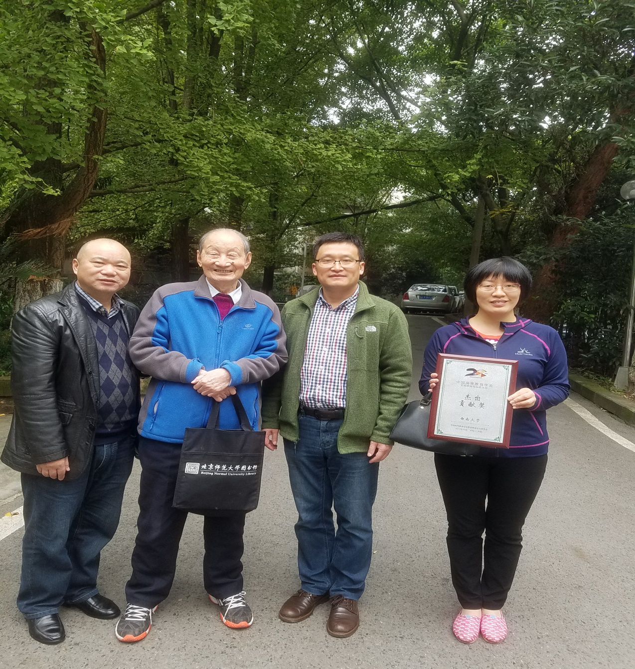2017年10月28日重阳节到来之际,为弘扬尊老爱老的传统美德,学院党委书记夏俊、工会主席袁智忠及办公室主任邓永利三位老师代表新闻传媒学院对离休教师李维品和退休教师钟守棋、翟晓嘉进行了节日走访慰问,祝他们节日愉快、身体健康、阖家幸福,感谢他们长期以来对学院发展的关心支持,送上了学院的重阳节慰问金。