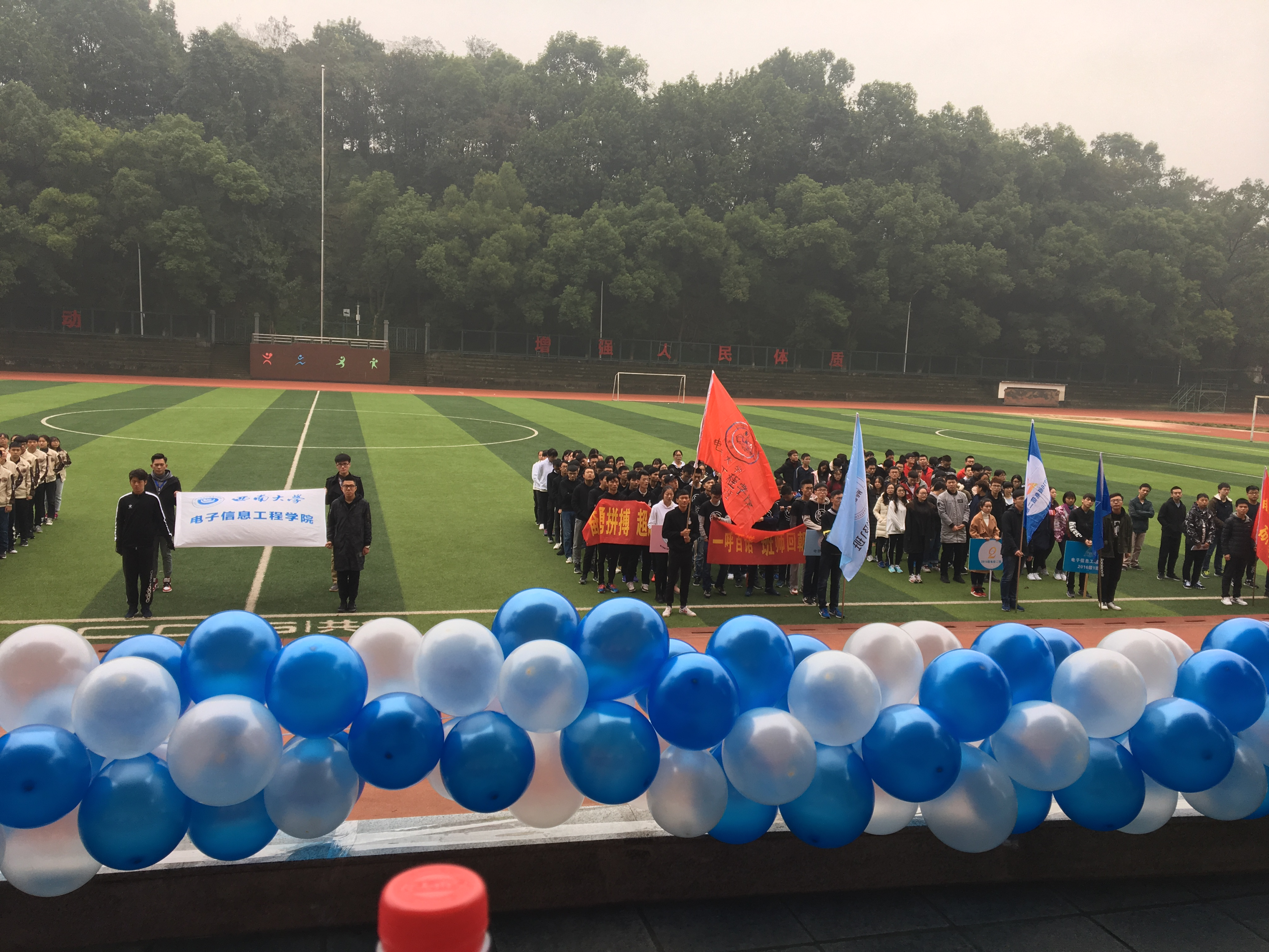 2017年11月25上午,电子信息工程学院冬季田径运动会拉开了帷幕。运动会开幕式于早上8:30正式开始,院党委书记毕均明、副书记李英、副院长郭松涛、工会主席张菁、办公室主任高渤等出席了开幕式。