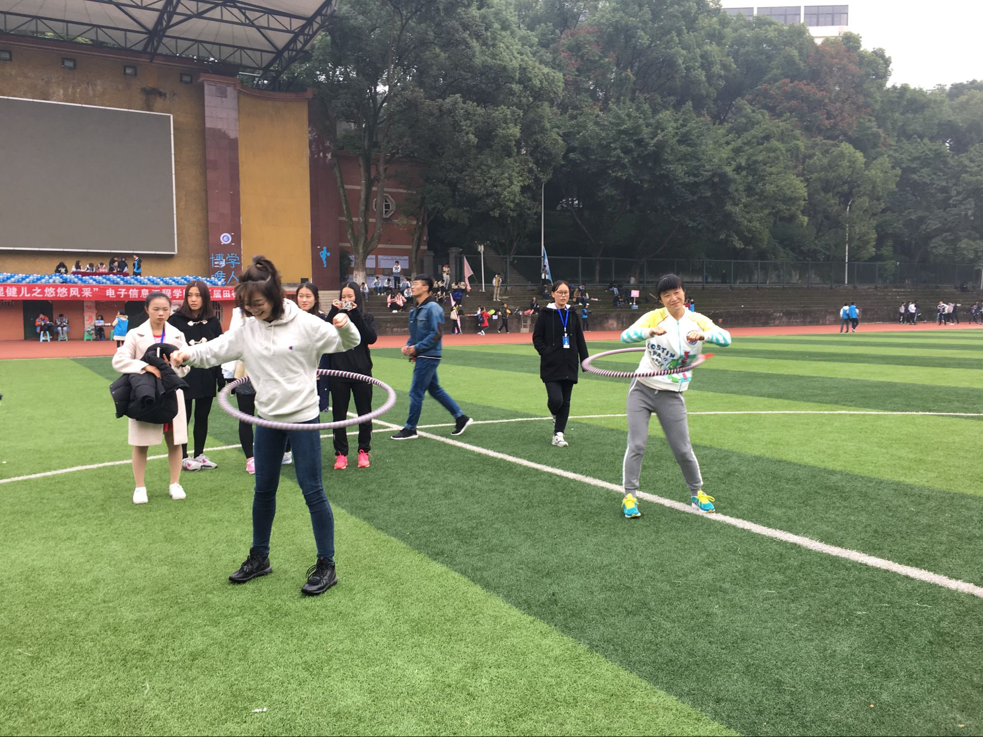 本次运动会分为教师组和学生组。教职工组设有100m、呼啦圈、赶猪入圈、沙包掷准等10项集趣味与健身于一体的项目。全院教职工在和谐、平等、友爱的运动环境中感受到集体的温暖和情感的愉悦,培养了良好的体育道德和集体主义精神。