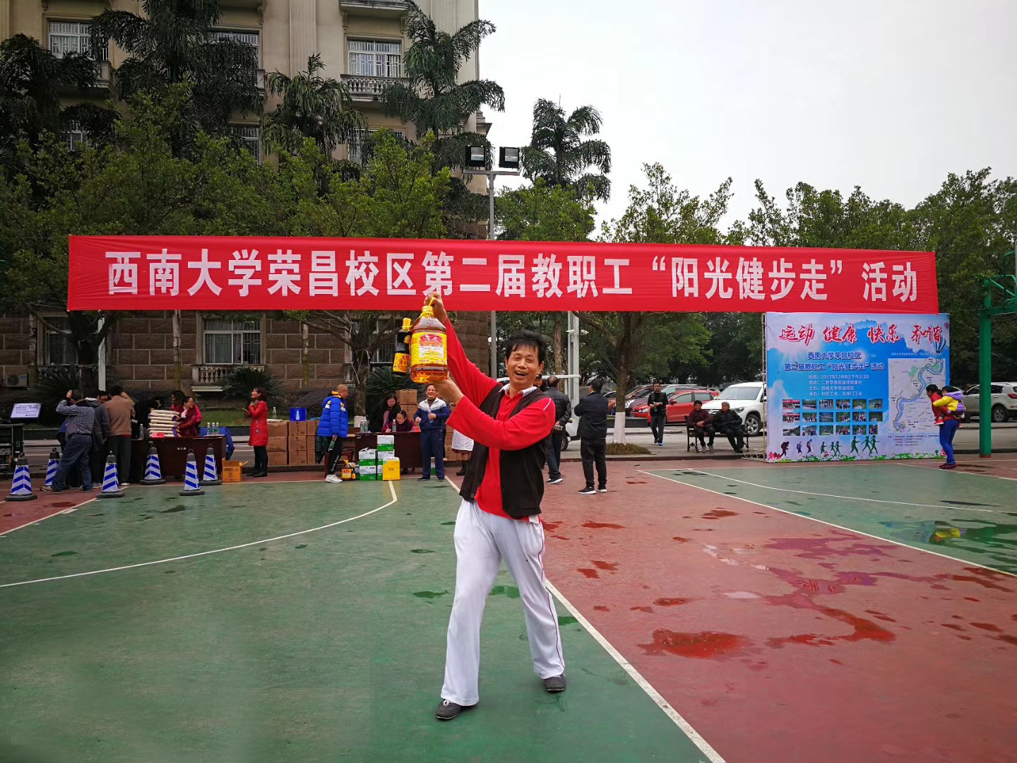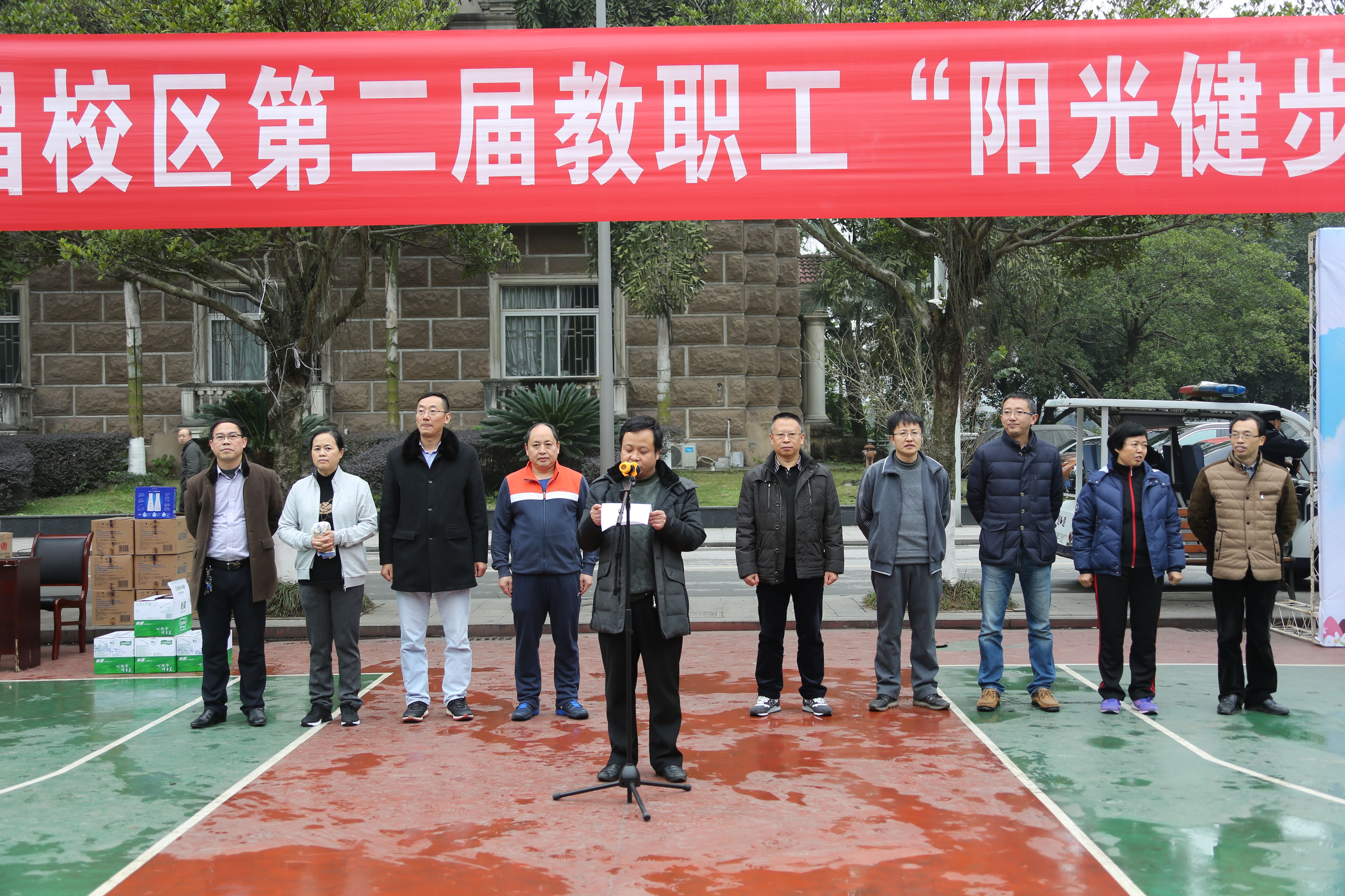 为了推动校区教职工健身活动的开展,加强教职工之间相互沟通、交流,促进“健康校园”建设,12月8日下午,由校区主办,校区工会,各学院、部门工会承办的第二届教职工“阳光健步走”活动在校区二教学楼门前篮球场举行,全校区在职职工参加了活动。